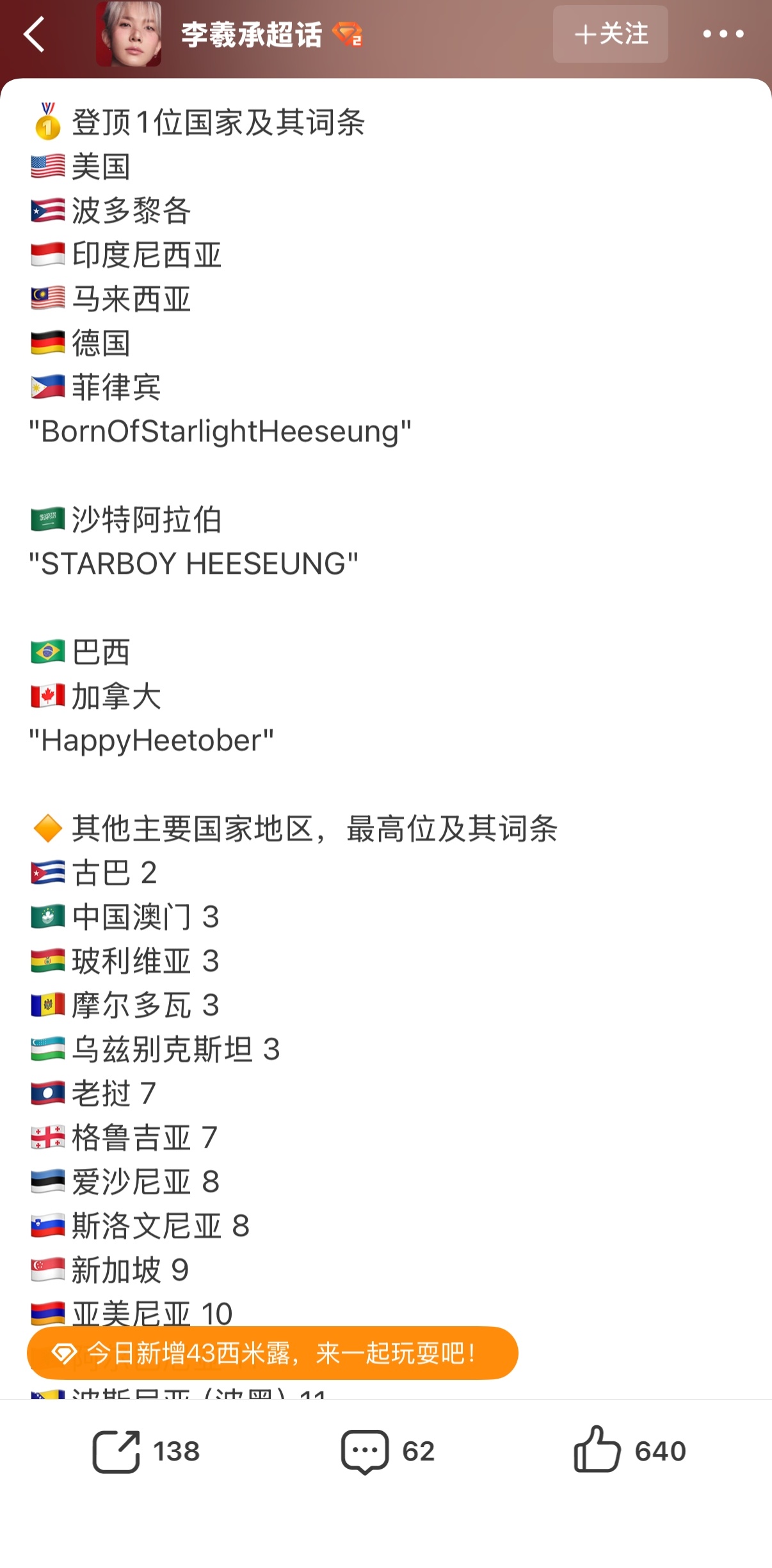 李羲承和朴成训两位符门面和符 top 的生日趋势 已经开始期待今年朴成训生日了