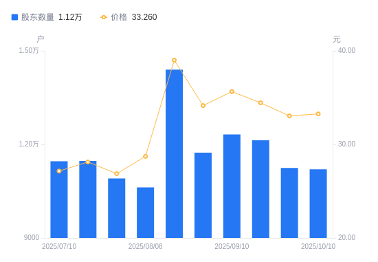 近一年(2024年9月30日至2025年9月30日),祥明智能A股股东户数从1.27万户,减低至1.12万户,降幅11.47%,区间股价上涨70.54%。