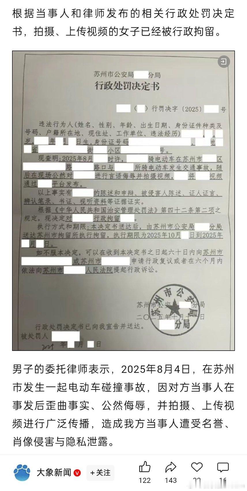 我听交警的事件后续:涉事女子被行拘!男子考虑进一步追究对方的责任。大快人心![哆啦A梦吃惊][哆啦A梦吃惊]