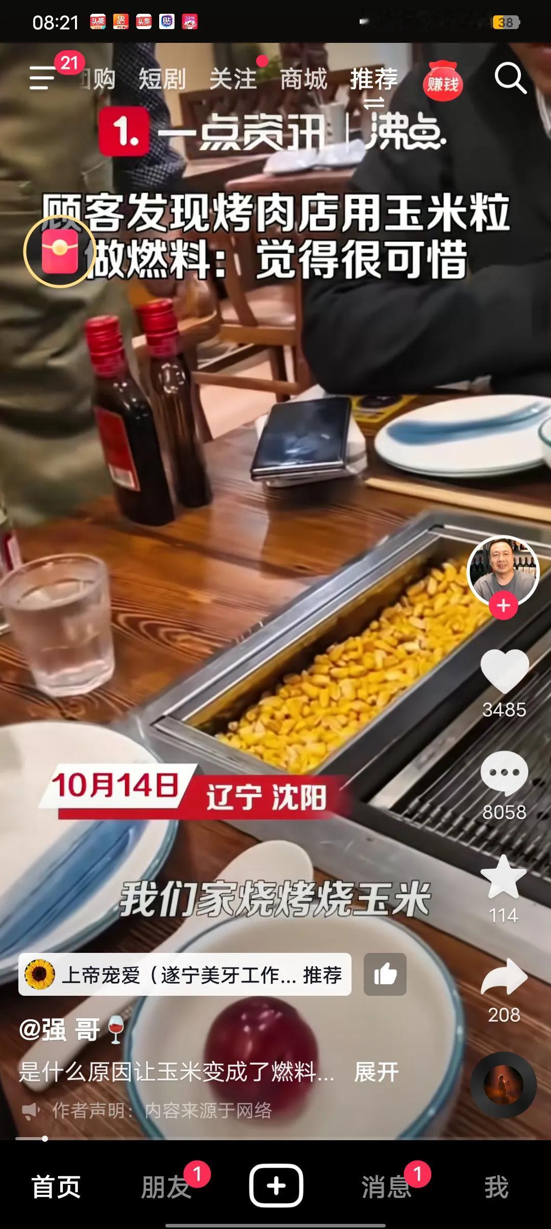 烧烤店用玉米做燃料,顾客觉得可以因为他是做农业相关的。我觉得这挺正常的吧!现在玉米大约4毛钱一斤,而碳大约4块,你说老板怎么选。而且今年粮食本来价格就低销量不好,只有粮食需求量大了,价格才会上去,这不就是市场调节吗? 玉米价值重估 炭火烤玉米 烧烤玉米 东北鲜烤玉米 摆摊鲜烤玉米 玉米价值重估 炭火烤玉米 烧烤玉米 东北鲜烤玉米 摆摊鲜烤玉米 玉米风干燃料 现烤现卖玉米棒