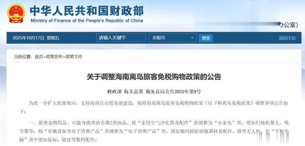 #三部门调整海南离岛旅客免税购物政策##海南离岛旅客免税商品新增2类#[关于调整海南离岛旅客免税购物政策的公告]