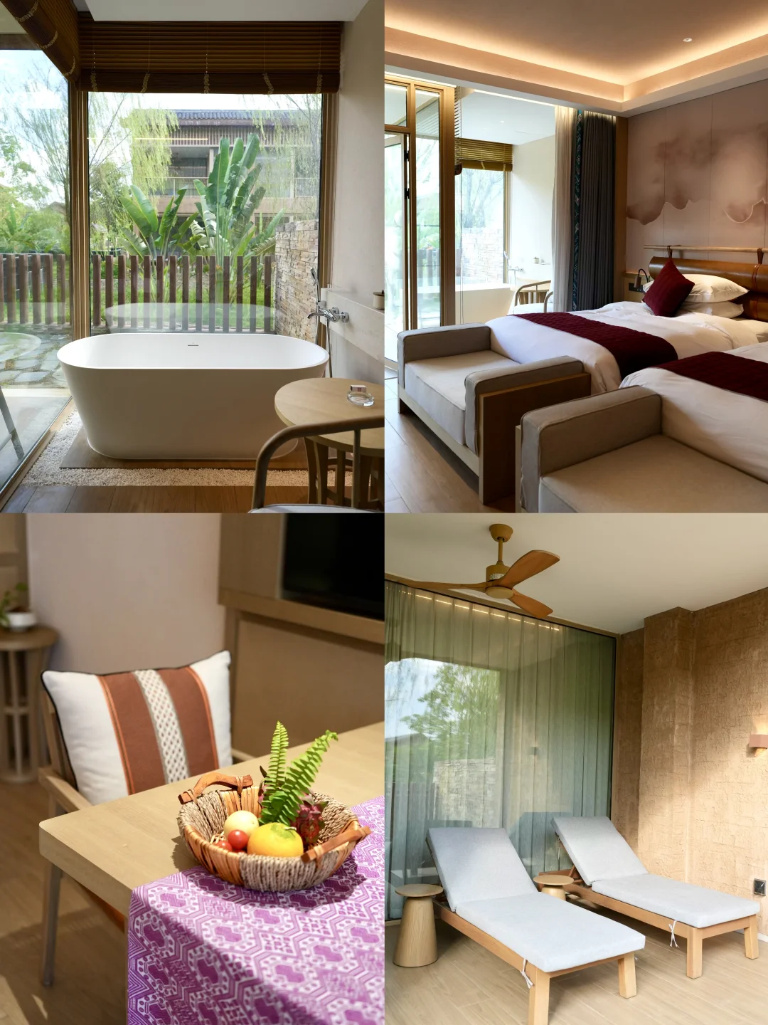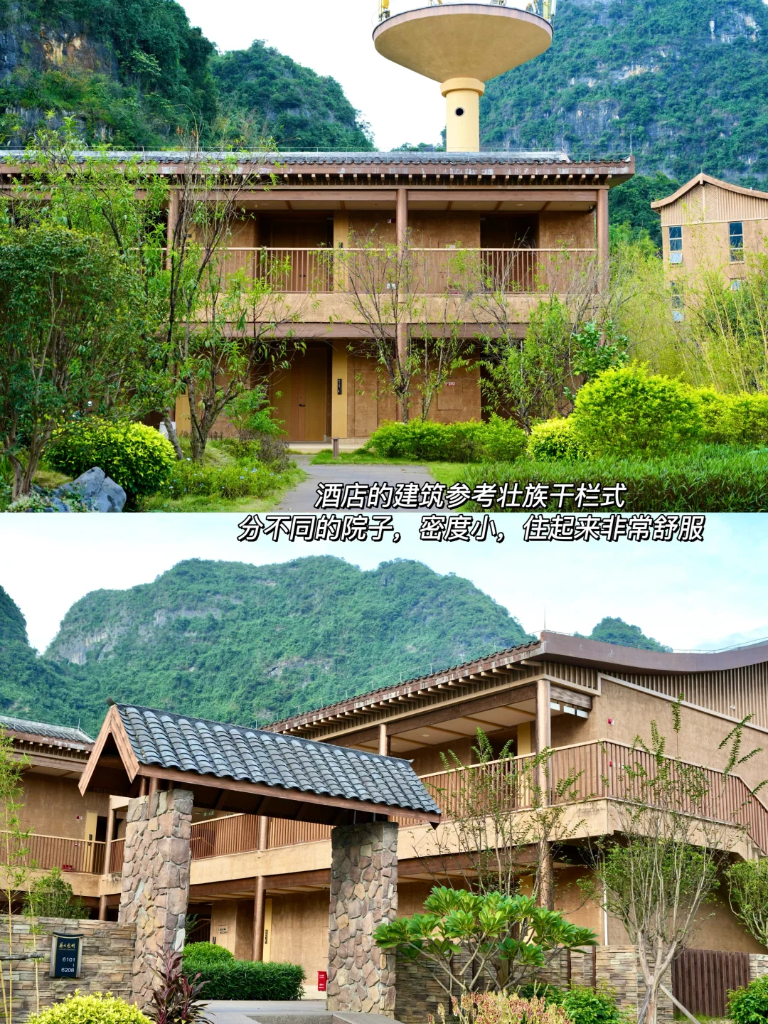 酒店是参照壮族干栏式建筑,分不同的小院,密度小,两层房间,房间里面空间大,住起来很舒服~