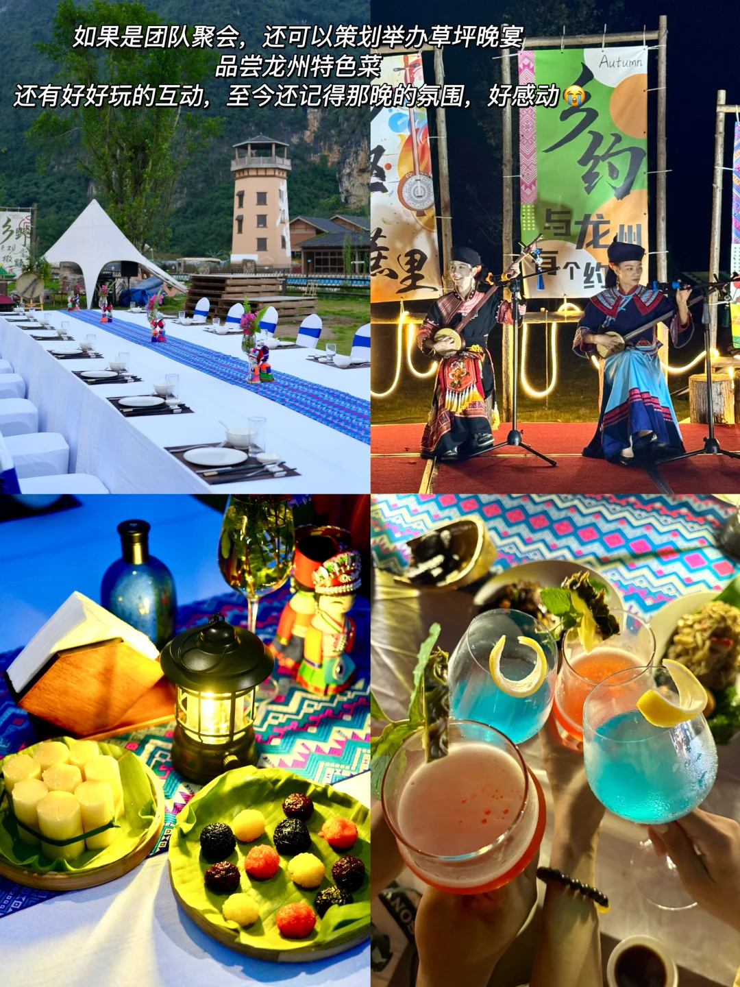 如果是多人游玩,还能举办草坪晚宴,品尝龙州特色“蔗海宴”,互动环节,篝火晚会、放烟花等🎆