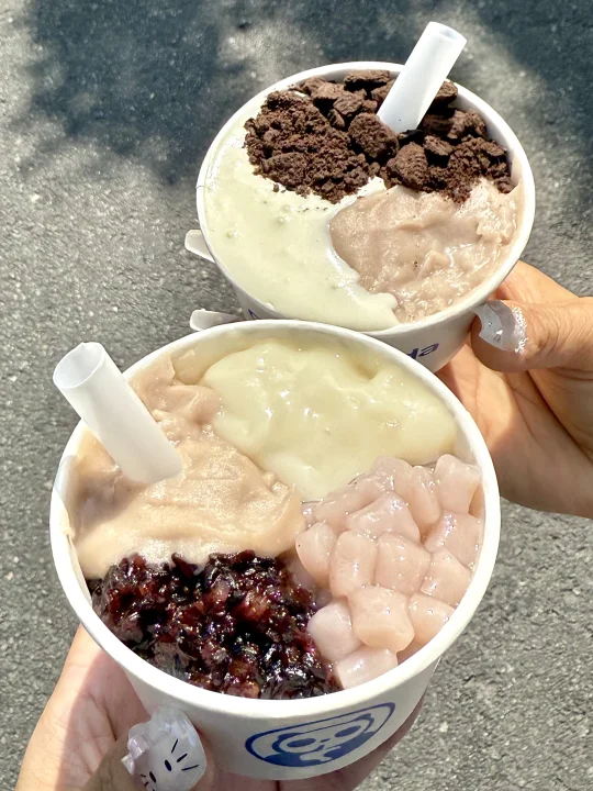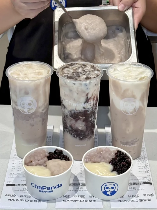 茶百道紫月光超厚芋泥终于回来了!!! 又软又绵又糯唧!多层咀嚼感超满足!!绵密的厚芋泥搭配七窨茉莉,清爽还不腻!真的好喝s了 推荐加份奶盖,液体版芋泥奶砖无敌好喝啊啊啊! 超厚芋泥奶绿➕血糯米➕奥利奥➕奶盖! 还有杯超厚芋泥奶茶也很绝!!区别在茶底是锡兰红茶喝着会更浓醇!另外加了份禾米麻薯和冻冻,妥妥的芋泥甜品杯!!! 不管喝了多少杯都喝不腻!!能不能永远焊在菜单上啊啊… · 对了对了!分享个新发现的隐藏甜品 血糯米➕芋泥➕禾米麻薯➕血糯米!!冷冻之后就是紫米芋泥麻薯奶砖贼好吃555 ·