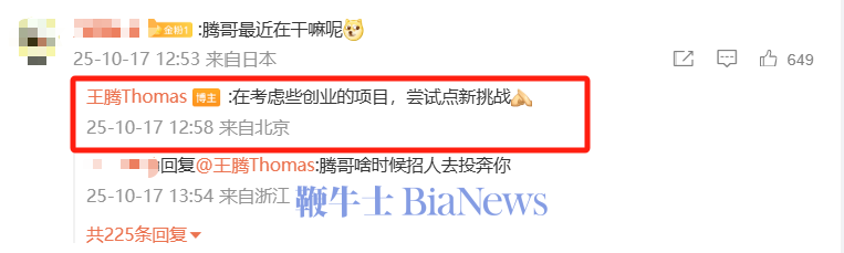 王化回复称,“在考虑些创业的项目,尝试点新挑战。”
