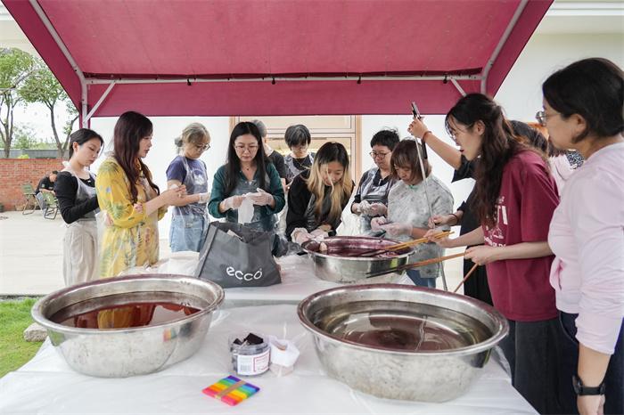 作为此次活动的重要组成部分,青年艺术家周莉在菜园美术馆外墙完成了一幅充满生命力的墙绘——《彩马图》,呼应艺术菜园边上的马术场所,让整个农场的艺术气氛连为一体。同时,上海大学上海美术学院青年教师赵蕾带来了“植染秋华:植物丝巾染制工作坊”。现场,居民们在艺术家的指导下,使用天然植物染料进行丝巾染制,通过捆扎、浸染等工艺将秋日感悟定格于柔美的丝巾之上。