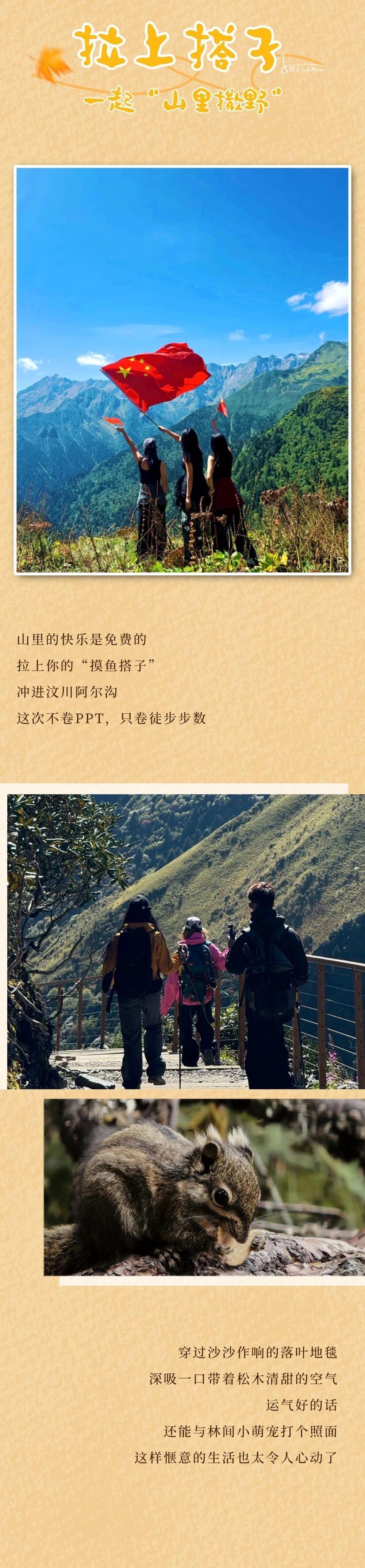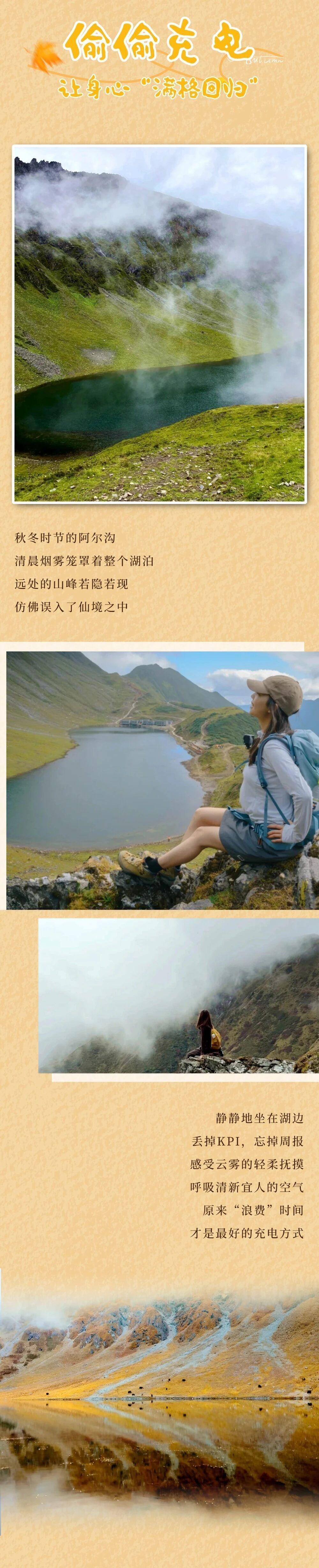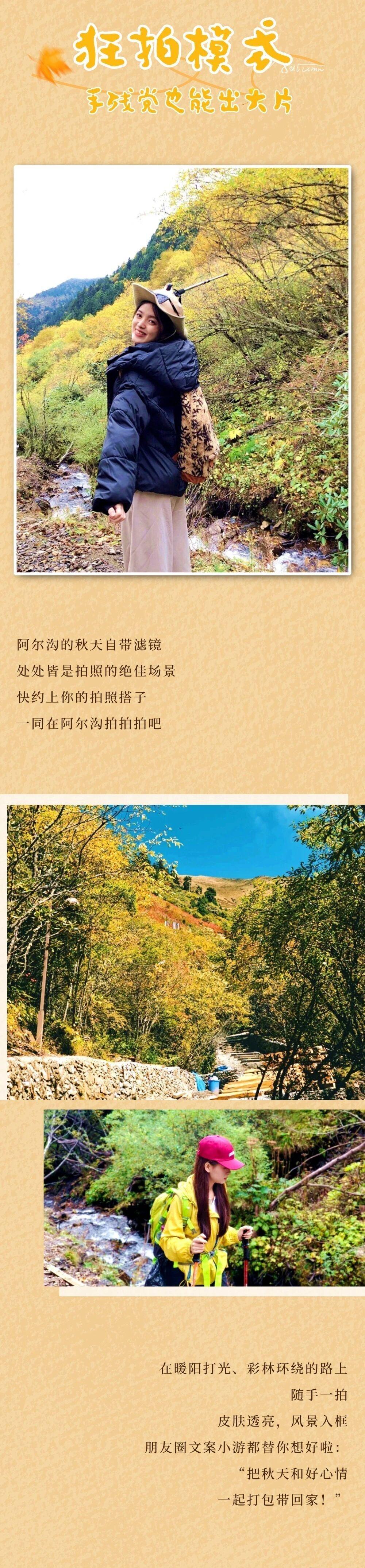 山河壮阔,秋日正好 别再把“等有空”挂在嘴边 工作的尽头看不见 阿尔沟的秋色却有限 这个秋天,拒绝“快进人生” 一起溜进山野 把时间“挥霍”在美好里
