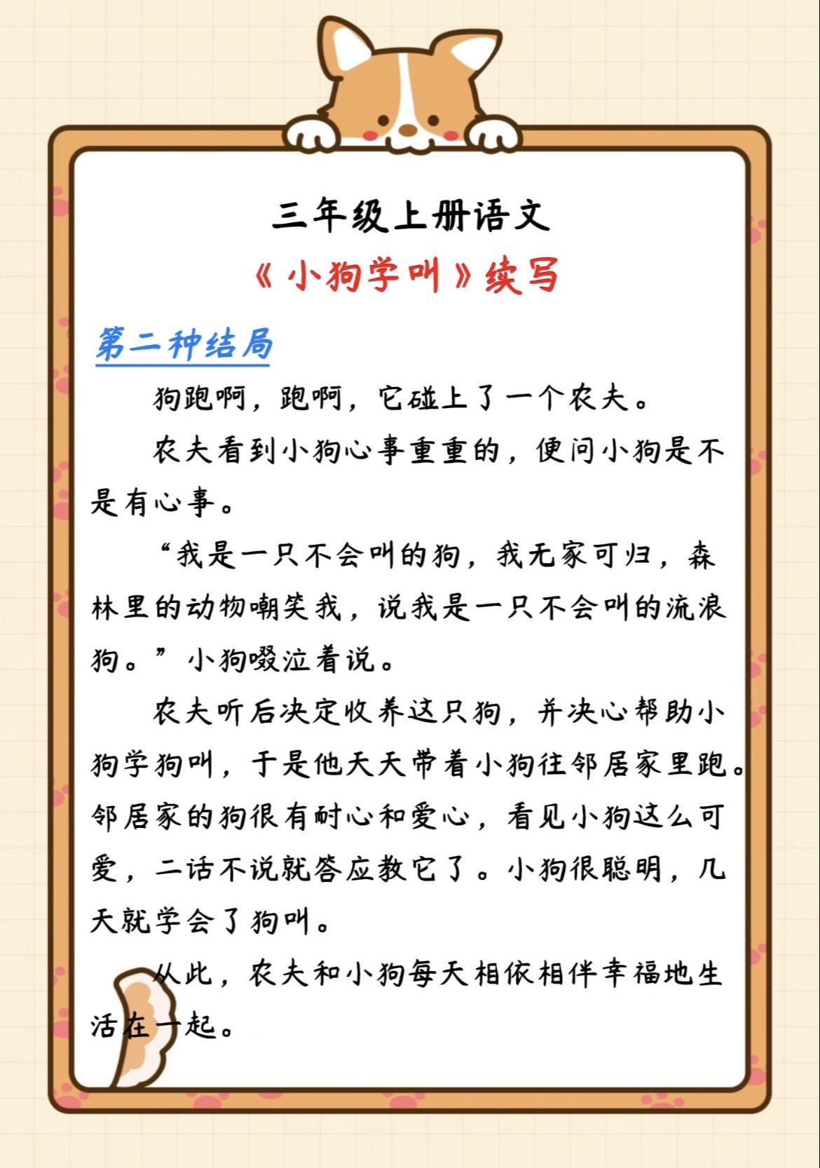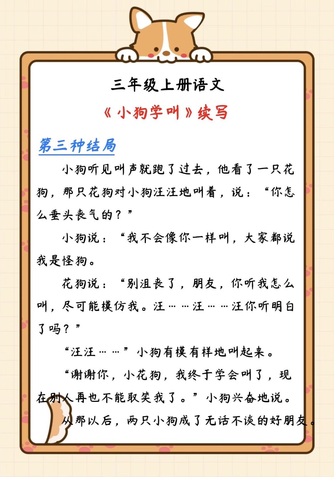 三年级上册语文《小狗学叫》三种结局续写。 你的预测结局可以是多种多样...