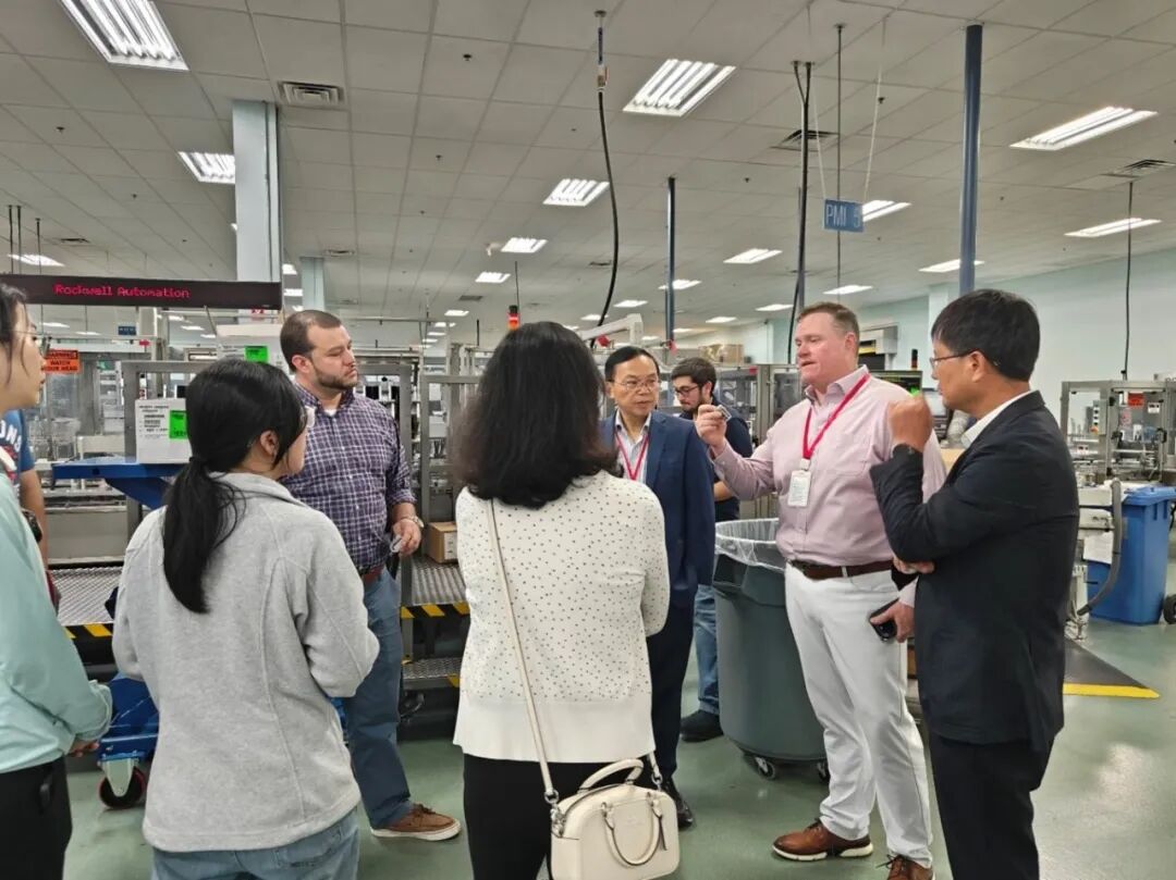 在三诺生物董事长李少波一行的陪同下,师生团们走进Trividia的核心生产区域,实地参观了血糖试纸与酮体试纸的现代化生产线,首次全面了解到从化学试剂配制、电极刻蚀、酶液喷涂、多层膜材精准叠合,到模切分板、批次定码、分条装瓶的各流程生产环节,并对高精度视觉检测与自动化设备在质量控制中的关键作用有了直观认识,深切感受到三诺生物在规模化、智能化与质量管理方面的领先实力。
