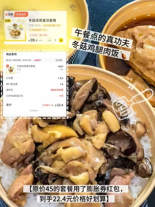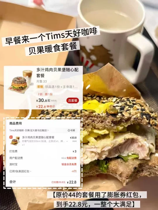 不想做饭的日子全靠美团外卖续命 今天这三顿直接把幸福感拉满♥️♥️ 💬早上困到灵魂出窍?几个闹钟间隔五分钟都叫不醒我,TIMS 填好咖啡贝果套餐直接救我狗命!贝果嚼着超有韧劲,夹的馅料满到溢出来,配冰美式一口下去,困意瞬间蒸发!冷热搭配超清爽 💬中午冲真功夫冬菇鸡腿肉饭,12点外卖小哥一送到办公室,开盖瞬间香到离谱!鸡腿肉嫩得能飙汁,冬菇吸满酱汁拌米饭,连炫两碗都不够!外卖送的贼快,到手还是热乎的,午休 10 分钟就能搞定一顿满足午餐,效率幸福感双在线~ 💬半夜追剧嘴馋怎么办?塔斯汀炸鸡翅桶安排上!外皮脆到咬着咯吱响,肉里还藏着汁水,一口气炫三个都不腻!虽然知道半夜吃油炸很罪恶,但这快乐真的顶不住啊! 打工人的快乐真的很简单 一顿好吃的外卖就能治愈所有疲惫 今天也是被美食拯救的一天~