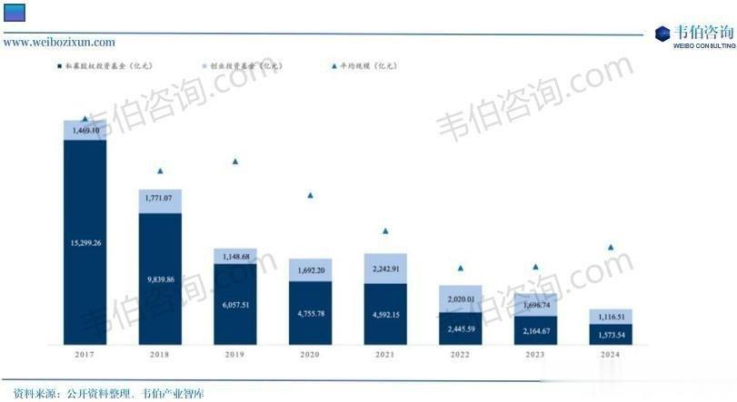2024年底,一批政府引导基金、母基金集中设立,这些基金规模庞大,动辄超过百亿元,从而拉高了2024年新设基金的平均规模至0.62亿元。