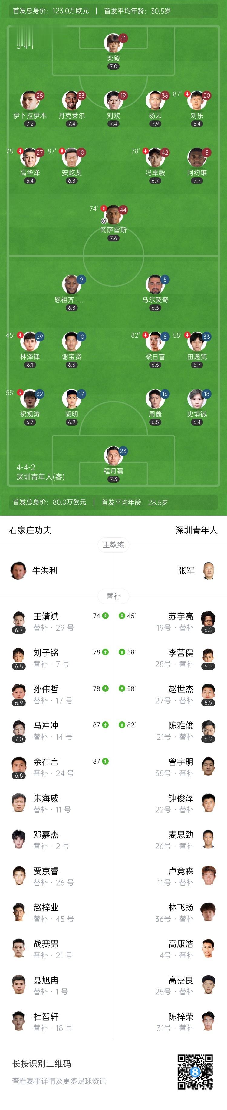 第29分钟,何塞-阿约维左路传中,冈萨雷斯小禁区内头球攻门得手!石家庄功夫1-0深圳青年人↓