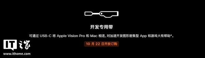 苹果最初于2024年2月在美国发售搭载M2芯片的初代VisionPro时,首次推出了开发专用带。该可选配件可通过USB-C将AppleVisionPro和Mac相连,主要用于应用程序开发和诊断目的。此配件仅限苹果开发者计划(AppleDeveloperProgram)成员购买。