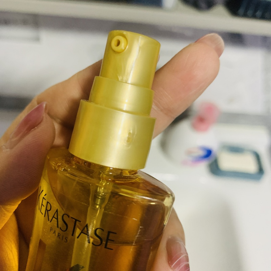它使用起来很清爽,完全没有很多护发精油的油腻感。质地比较轻薄,小分子颗粒搭载裸感配方和快速分解科技后,非常好吸收,不会糊在头发和手上,适合所有发质,油头的姐妹也可以放心用,