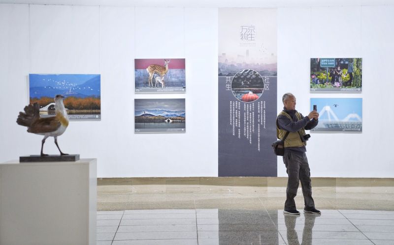 “京生万物”北京野生动物摄影作品展聚焦北京本土生态,50幅作品以北京地标为背景,展现古建野趣、社区共生、山水秘境中的野生动物,另有100余种北京野生动物影像组成的巨幅“京生万物”鸟兽百图辅以物种二维码,展示了北京的生物多样性。