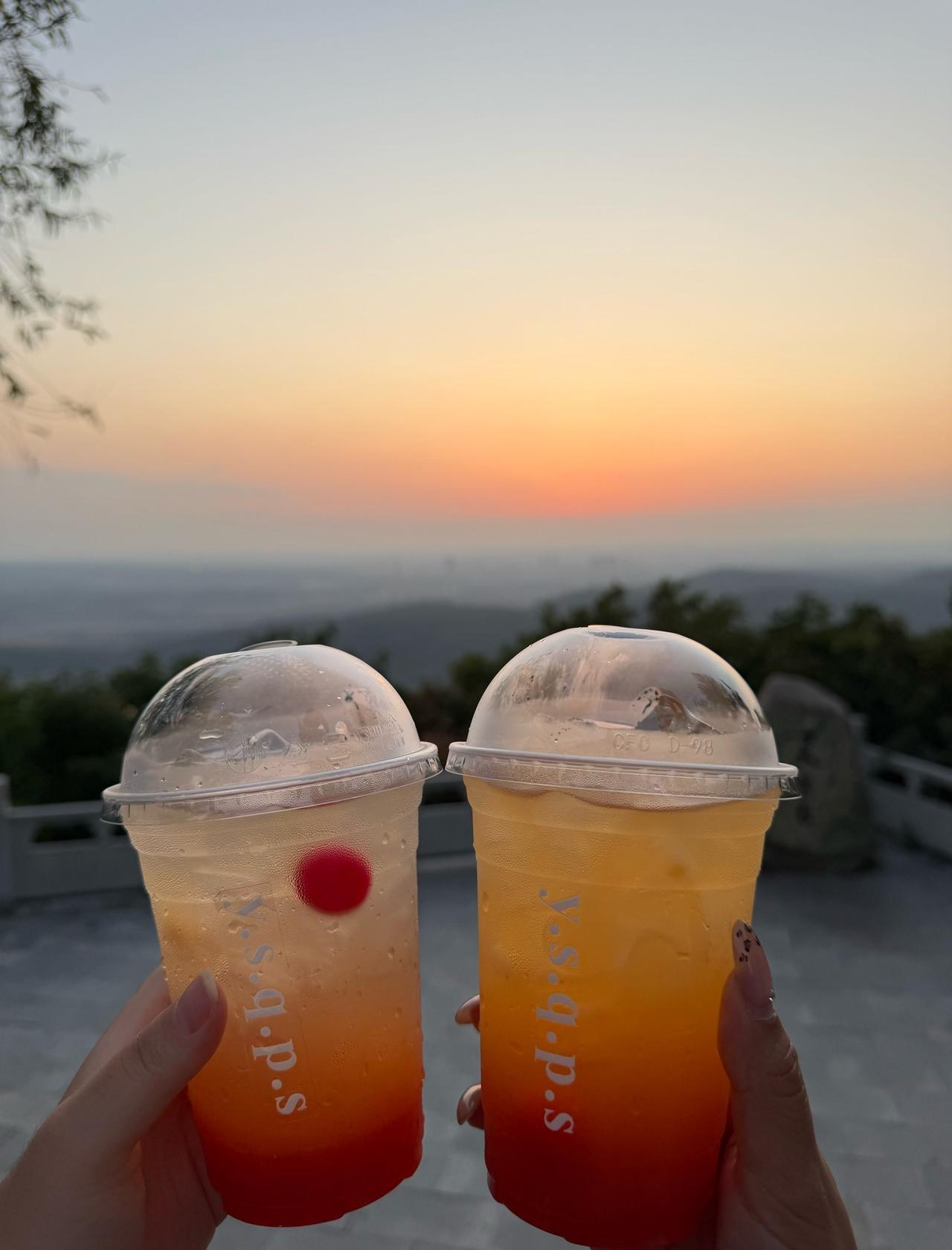 周末山里吸氧 ⛰️ 无意间发现超适合看日落的地方 搜索棋盘山—天缘台 跟随指引一路向前 大概5:20分 就能看到橙色的落日绝美 还有旁边的云上咖啡☕️ 饮品种类很多 还有沈阳特色鸡架雪糕 选了一杯橙色的气泡水 渐变色的 好看又好喝 拍照打卡也非常出片 看到他家新搭建的营地 可以休息小憩 周末又多了一个可以放松的地方~🍃 沈阳攻略周末去哪儿棋盘山十一好去处