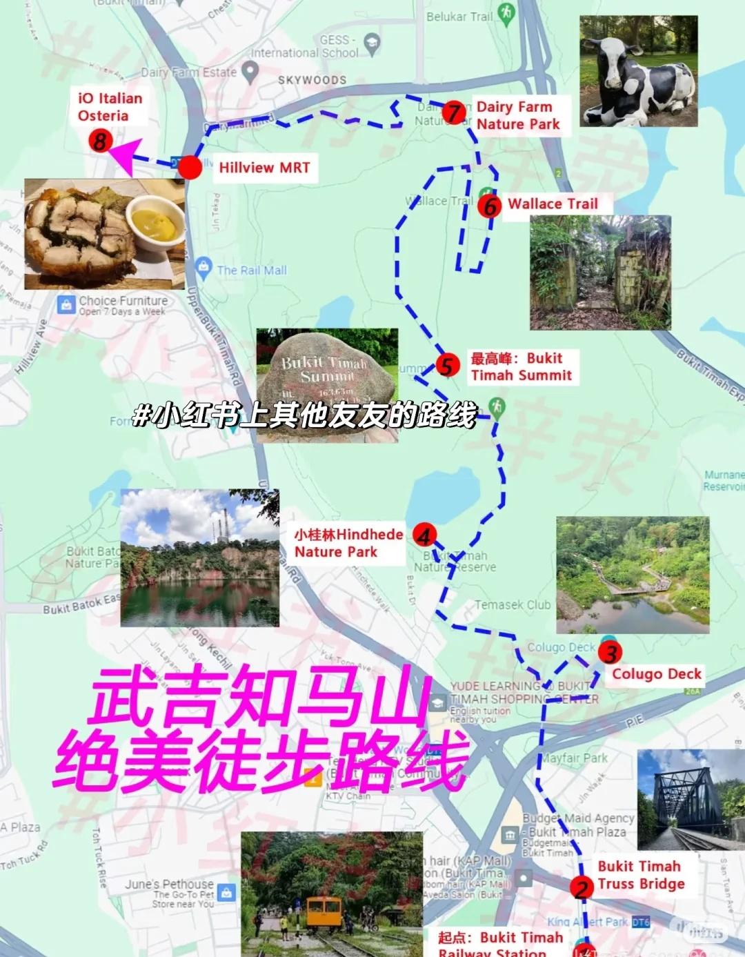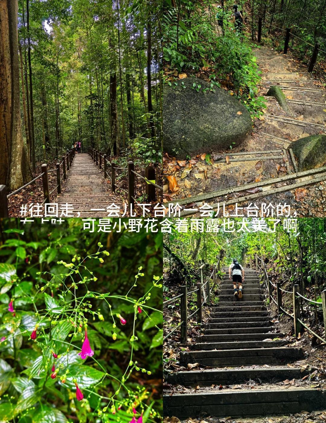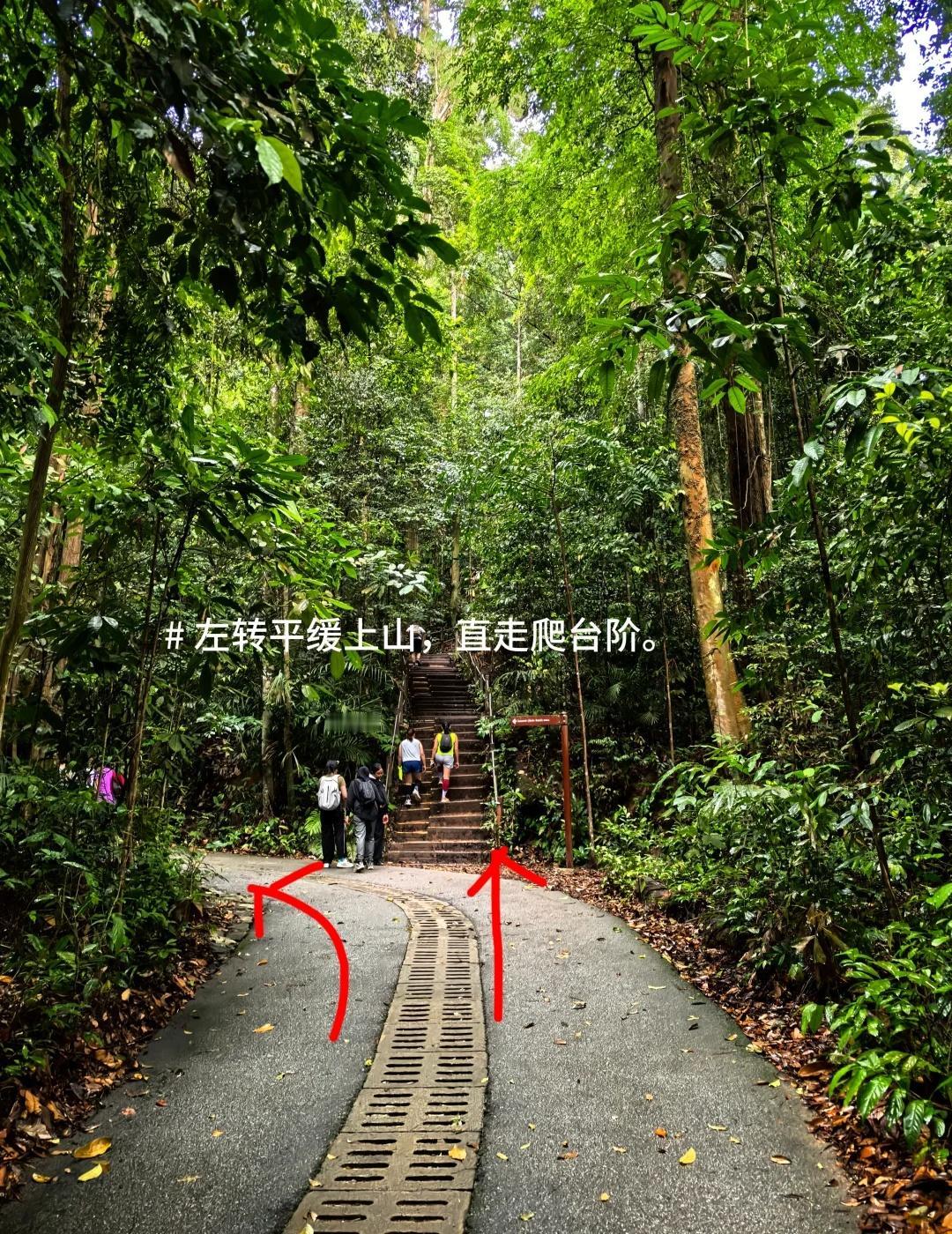 🇸🇬新加坡最高峰⛰️武吉知马山徒步 刚走完的新鲜攻略,带着早上清新的露珠😌 新手全程走走停停大概2小时,非常友好👌治愈系大森林😌感恩 1️⃣Beauty world mrt 公共交通到美世界地铁站🚉或者公交导航武吉知马Trail 坐到更近一点也可以,地铁站走过去一路有雨棚也挺舒服 2️⃣ Summit 有平缓的步道和台阶两条上山的路可以选择,我们上山走的平缓步道,很轻松,我拖鞋上去也没有问题(但是不建议,登山徒步还是要保护好自己)。一路上有岔道可以去几个小公园和小桂林。有几个坡非常陡,好在每段路程不远,歇歇停停上来也不太累,然后走一段150米的登高台阶就到山顶了。 3️⃣ Dairy Farm ❗️到了山顶以后如果必须原路返回的话请一定注意看路牌,我们以为到了山顶往前下山的路都一样,结果走到了这一大片公园的另外边,不是回到起点。不过往DAIRY FARM走,误打误撞到了dairy farm mall,有baker&cook和Luckin coffee, 还在fairprice买了好吃的回家。给这次徒步画上完美句号。 早上天亮前刚下了雨,林子里特别幽静舒服,感觉整个身心都净化了。 图片附上更详细的路线,是刷姐妹的,感谢大家的总结和分享 新加坡 新加坡徒步 武吉知马 武吉知马山 新加坡最高山 一日徒步 治愈 亲子 周末遛娃