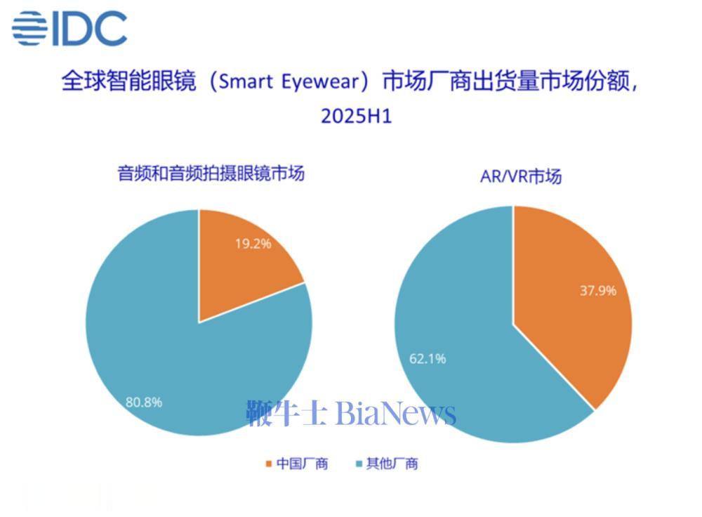 2025上半年,中国智能眼镜厂商出货量突破100万台,同比增长64.2%,占据全球26.6%的市场份额。