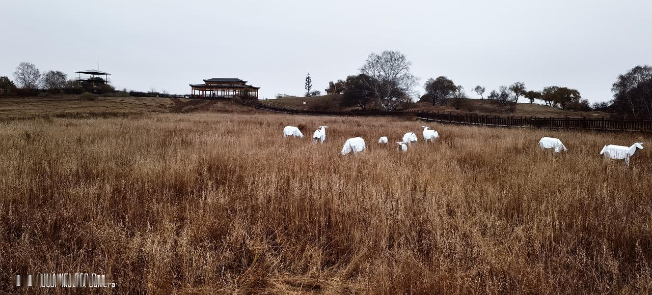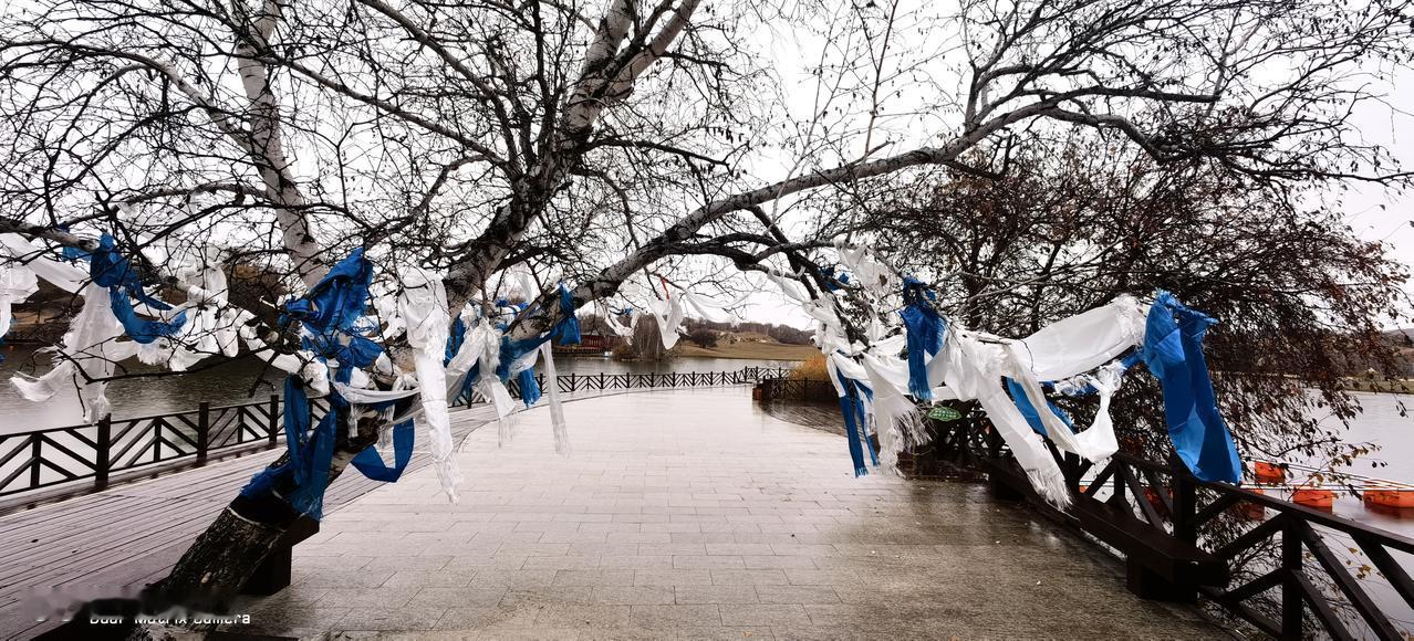 乌兰布统的雄宏秋色,被公主湖的一滴泪水“大坑”,淹没了多少好好心情! 满怀饱尝乌兰布统美景的心情,驱车万里,激情燃烧,本想一览“天苍苍,野茫茫。风吹草低见牛羊”的绝味秋色,可能第一站公主湖便给人一瓢冰镇凉水,浇灭了激情澎湃和歌声悠扬! 蓝齐格格一滴泪,远方游客千般怨!几座亭子,一汪池水,数十只洁白的假羊,在池畔草地中随风飘荡。一尊孤零零的雕像,几十条挂在树枝上的哈达,诉说着曾经的故事! 公主湖,在北方人眼里,也许是湖。但在南方人的心中就是一个池塘!谈不上风景如画,只有牵强的故事而已! 乌兰布统的败笔,也许就是蓝齐格格的一滴眼泪:公主湖!让游客失望万般的“一坑水”! 走吧,忘记这个公主湖,去乌兰布统那些重拾好心情的地方吧!