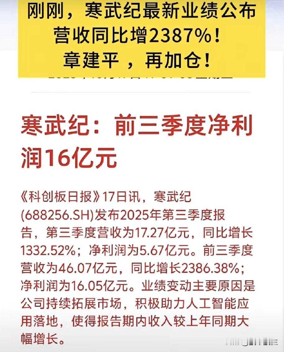 快讯! 爆了!业绩爆表了! 同比增长1332.52%——第三季度实现营收17.27亿元。据传章建平,再加仓! 黄仁勋自曝:英伟达在中国市场份额已经跌至0%了!我们被动退出了中国市场!市场份额从95%降到了0‰。剩下的市场被谁吃掉了? 寒武大帝睡觉都要笑醒,美国的制裁,成就的是我们的芯片半导体企业,这只是英伟达刚刚退出,那么第四季度呢?最大的受益者寒武大帝等国内相关龙头企业,业绩不爆发都难!预期和成长逻辑明牌了! 下周一开盘,今天大跌的半导体行业必将绝地反击,实打实的利好就摆在这里,业绩就是最好点火者,起飞🛫!自主可控!