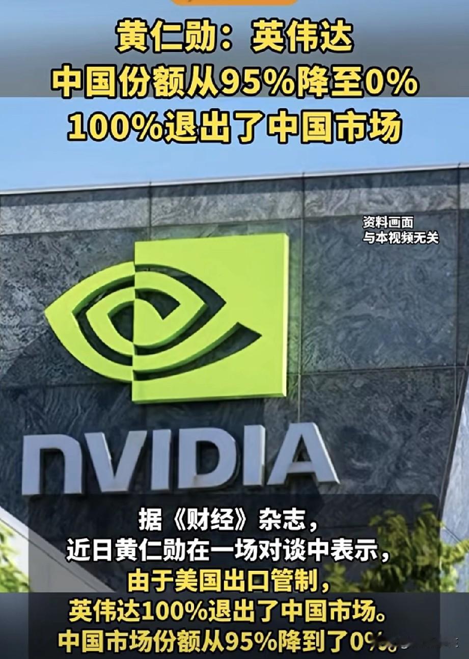 🌿艹,彻底摊牌了吗? 特老头宣布贸易战开始,扬言“以34敌1”,对我加税500%,20多项制裁针对我国,逼我国妥协,世界将为两国贸易战埋单。美财长日前批评我国政府实施的稀土出口管制是“我国对抗世界”,并号召盟友就此“展开合作”。 有个毛用啊,打的一拳开,免得百拳来啊,除了稀土这张牌把你打痛,还有金刚石粉末直击要害,港口收费,开门大吉,首日上千万人民币。为了今天我们从2016年,足足准备了9年,我们已做好了全面开打的准备,哪怕你纠结的再多的国家,没有稀土金刚石,你的飞机,大炮,军舰,半导体等通通停产,你还拿什么跟我们斗?特老头是来搞笑的吗? 在鹰酱的施压下,都是谁率先出手了?一是头号狗腿小英将11家我国实体纳入制裁名单,含数家半导体公司。二是奴才小日则在薄膜沉积、蚀刻设备等关键环节加强管制。三是出头鸟小荷限制ASML对华出口光刻机,明抢闻泰科技的安世半导体导体。四是小欧在半导体等高科技领域,配合美国实施出口管制,对先进制造设备、EDA工具、光刻机等关键产品加强限制。 虽然鹰酱和他的小弟叫的很凶,可我们不惯着臭毛病,不但要坚决反击,还要杀鸡咳猴,让那些蠢蠢欲动的掂量掂量自己的分量。 痛不痛只有亲历者者知道,黄仁勋自曝:英伟达在我国市场份额已经跌至0%了!我们被动退出了我国市场! 从我们的市场份额95%降到了0%。 我国作为世界上最大的半导体市场,英伟达的退出意味着国产AI芯片的崛起,不管贸易战是战是和,大科技的自主可控国产替代,已箭在弦上,不得不发,看看国家机关更换使用国产W PS文件,电脑全部换成国产软硬件等等,还有下周一开始的大会,细思极恐啊!炒股炒的是预期,从整个国际国内大环境来看,看看今天下跌的半导体板块,随着国运的崛起,是不是一个黄金坑?后面的利润和成长是不是有预期?