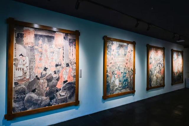 在水浒忠义厅,《水浒传》中的经典画面极具故事性和艺术性,水浒一百零八将画像更是神态鲜活。翰墨古今多媒体厅里,《上海城隍庙群仙欣会图》《三十六雷将》《水浒梁山群雄末途图》等画作通过平移处理“活”了起来,卷轴缓缓铺展开来,人物各具动态,将戴敦邦精湛的画技放大展示,更传画中韵味。108IN艺文空间展陈戴敦邦作品周边,艺术传播中心联合西湖文创推出近60款其艺术IP主题文创产品,让古典艺术融入普通观众的日常生活之中。108将艺术回廊,则可以使用手机NFC感应召唤水浒英雄,观看专属动画,了解英雄豪杰的勇毅事迹。