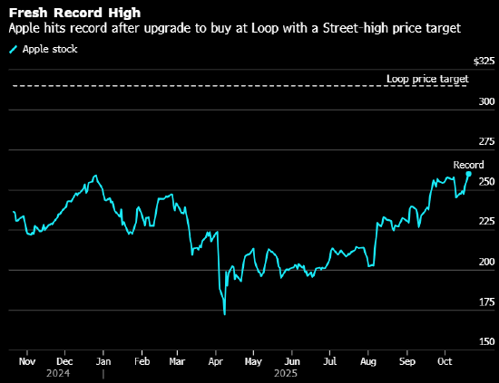 苹果公司股价在周一创下2025年新高,此前LoopCapital将其评级从“持有”上调至“买入”,成为最新一家看好iPhone需求趋势的投行。