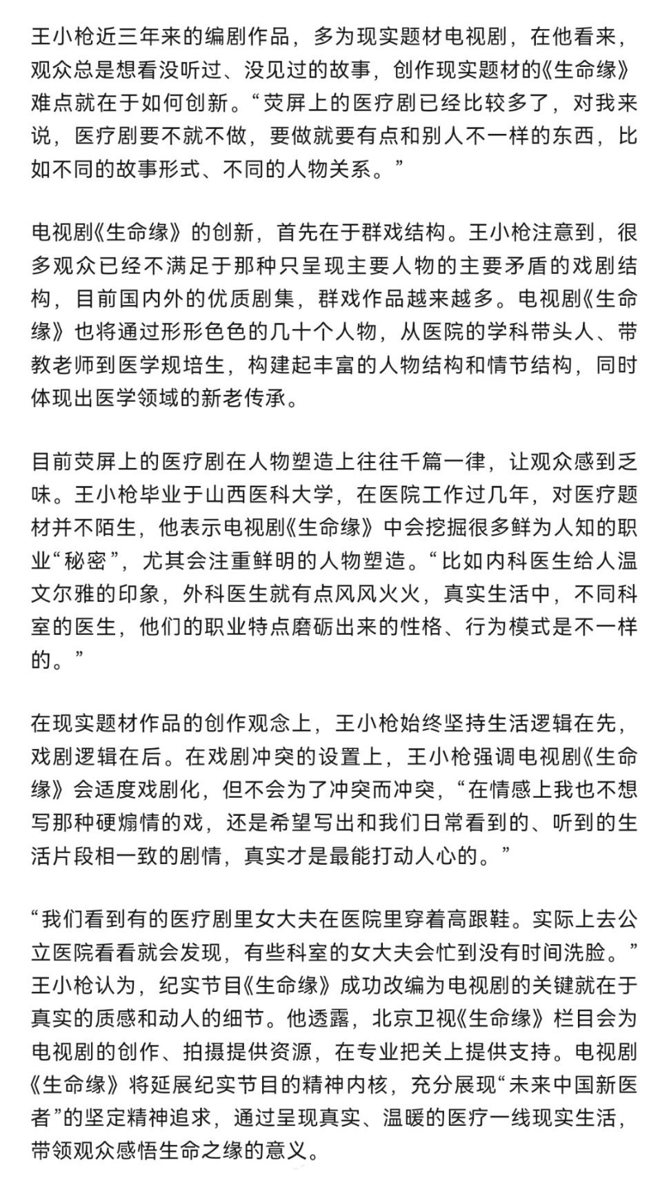 《生命缘》女主庄达菲,导演杨磊《三体》,编剧王小枪《对手》