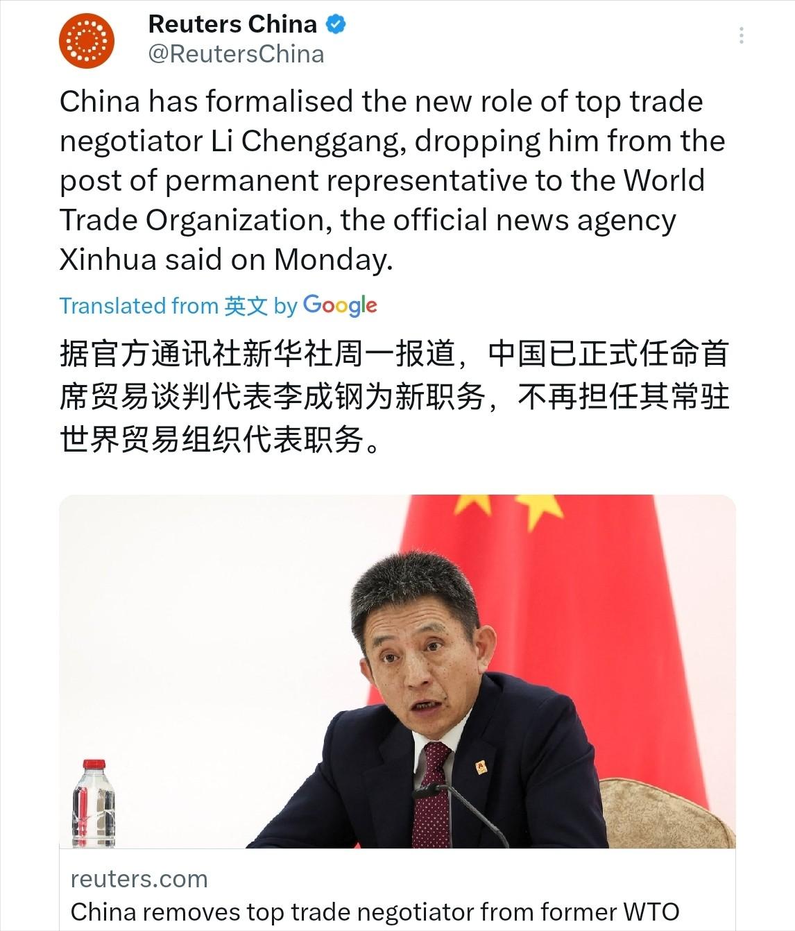 贝森特白高兴了一场!正当西方媒体把我们对李成钢副部长的职务调整解读为李成钢已经不被重用,贝森特的施压与攻击奏效之后,路透社表示,这样的说法明显是错误的。 贝森特这边刚因西方媒体的解读露出得意神色,路透社的报道就给这场欢喜泼了盆冷水。10 月 20 日,这家国际通讯社直接澄清,外界将李成钢职务调整解读为 “不被重用”“施压奏效” 完全是误判,事实是这位正部长级官员迎来了新任命,出任首席贸易谈判代表,同时不再担任常驻世贸组织代表等职务。 这场解读风波的主角李成钢,在经贸领域早已是身经百战的 “老兵”。他早年毕业于对外经济贸易大学,从商务部基层岗位起步,一路摸爬滚打,对国际贸易规则的熟稔程度堪比 “活字典”。 2016 年,他在应对欧盟反倾销调查时,连续三天泡在谈判室,凭借对数据的精准把控和对规则的灵活运用,最终让对方撤销了不合理的惩罚性关税,那次硬仗让他在业内攒下 “谈判铁嘴” 的名号。 担任常驻世贸组织代表期间,李成钢的表现更是可圈可点。2023 年世贸组织总理事会上,面对美欧等国针对中国产业政策的集体发难,他不卑不亢,引用世贸组织多项规则逐一反驳,还拿出详实的数据证明中国市场的开放程度,那场发言被不少外媒评价为 “教科书级别的回应”。 他还牵头推动了多项发展中成员间的合作倡议,仅 2024 年就促成 12 个国家加入投资便利化协议联署,这样的履历让他在国际经贸圈积累了深厚人脉和声望。 西方媒体的误读并非毫无缘由,此前贝森特曾多次针对李成钢施压,公开批评其在贸易谈判中 “立场强硬”,甚至联合部分国家试图阻挠他在国际机构中的工作。 10 月 20 日职务调整消息一出,不少西方媒体立刻跟风炒作,将其解读为 “对施压的妥协”,贝森特团队更是暗中造势,营造出 “攻击奏效” 的假象。 但路透社的报道直接戳破了这种假象。报道明确指出,首席贸易谈判代表这一职位肩负着统筹国内外贸易谈判的重任,在当前全球贸易摩擦加剧的背景下,需要兼具国际视野和谈判经验的资深官员掌舵。李成钢的调任,恰恰是因其丰富的实战经历和专业能力得到认可,而非所谓的 “失势”。 李成钢向来以沉稳务实著称。在一次内部研讨会上,他曾说过 “谈判不是逞口舌之快,而是为国家争取实实在在的利益”。这种风格让他在处理复杂贸易争端时总能抓住关键,比如 2022 年中美经贸磋商中,他既坚守核心利益底线,又灵活调整沟通策略,为达成阶段性协议奠定了基础。 此次职务调整,其实是对当前经贸工作重点的精准适配。随着全球贸易格局变化,多边贸易谈判与双边磋商的联动日益紧密,首席贸易谈判代表需要协调各方资源,制定统一的谈判策略。李成钢在驻世贸组织期间积累的多边谈判经验,与他早年参与双边谈判的经历形成互补,正是这个岗位的理想人选。 贝森特等人显然没看清这一点,过早的乐观最终沦为笑谈。李成钢的新职务,意味着他将在更核心的岗位上发挥作用,而这场被澄清的误读,也让外界更清晰地看到中国经贸决策的独立性与专业性。 对此,你们有什么看法,欢迎评论留言~
