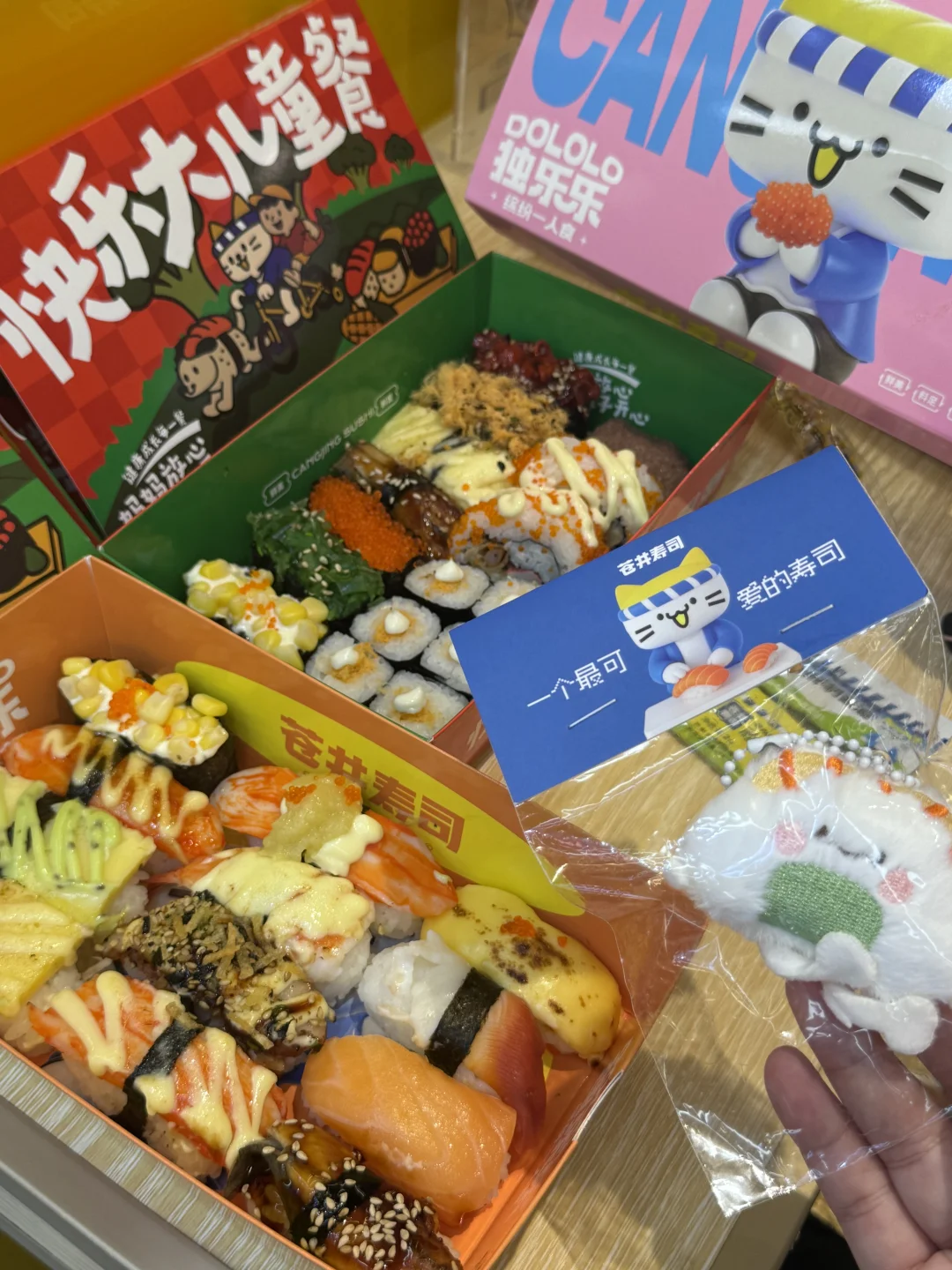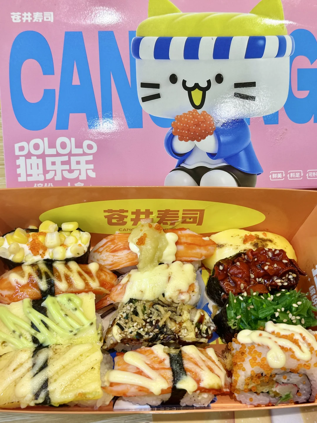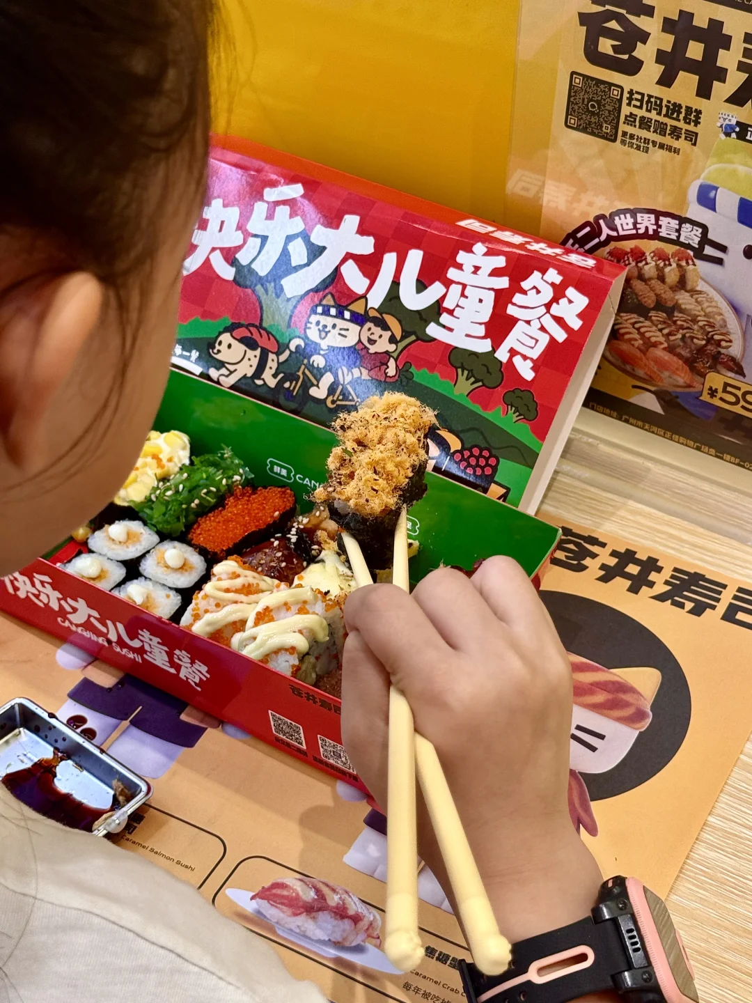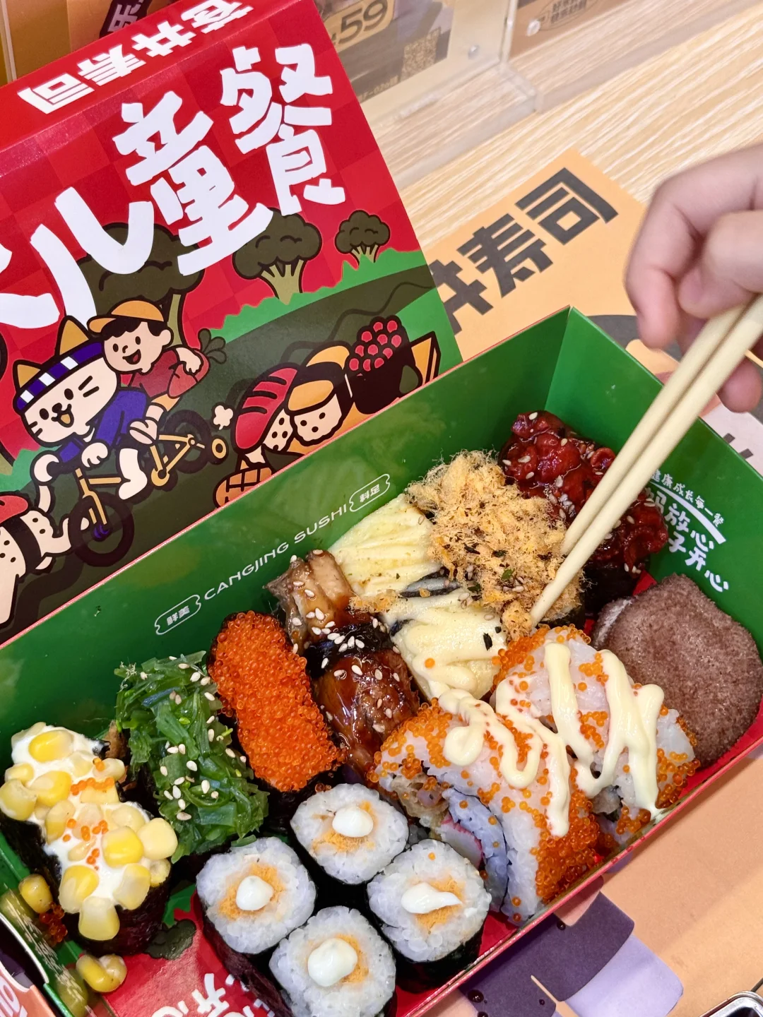 啊啊啊啊!这家买寿司🍱的人暴多啊! 我也去凑热闹了 哈哈😂 带上我的娃就冲了过去 拿下(全熟系列)儿童套餐一份29r搞定一大盒✌️ 我选择了39元任选12件✌️太划算了吧 颜色搭配还蛮好看的 hhhh😄 榴莲味的寿司我第一次吃!榴莲与蟹肉相互碰撞的味道好特别呀😌👌 而且新店开业买套餐还送周边猫爪筷子🥢一副 可把月牙开心🥳坏了! 周末带宝宝就是正佳广场最好玩最好吃了😋 店铺就在正佳广场负一层~~~ 正佳广场周末去哪儿带娃周边游广州寿司广州美食正佳广场美食苍井寿司聚餐日自选寿司人均30苍井寿司新店开业