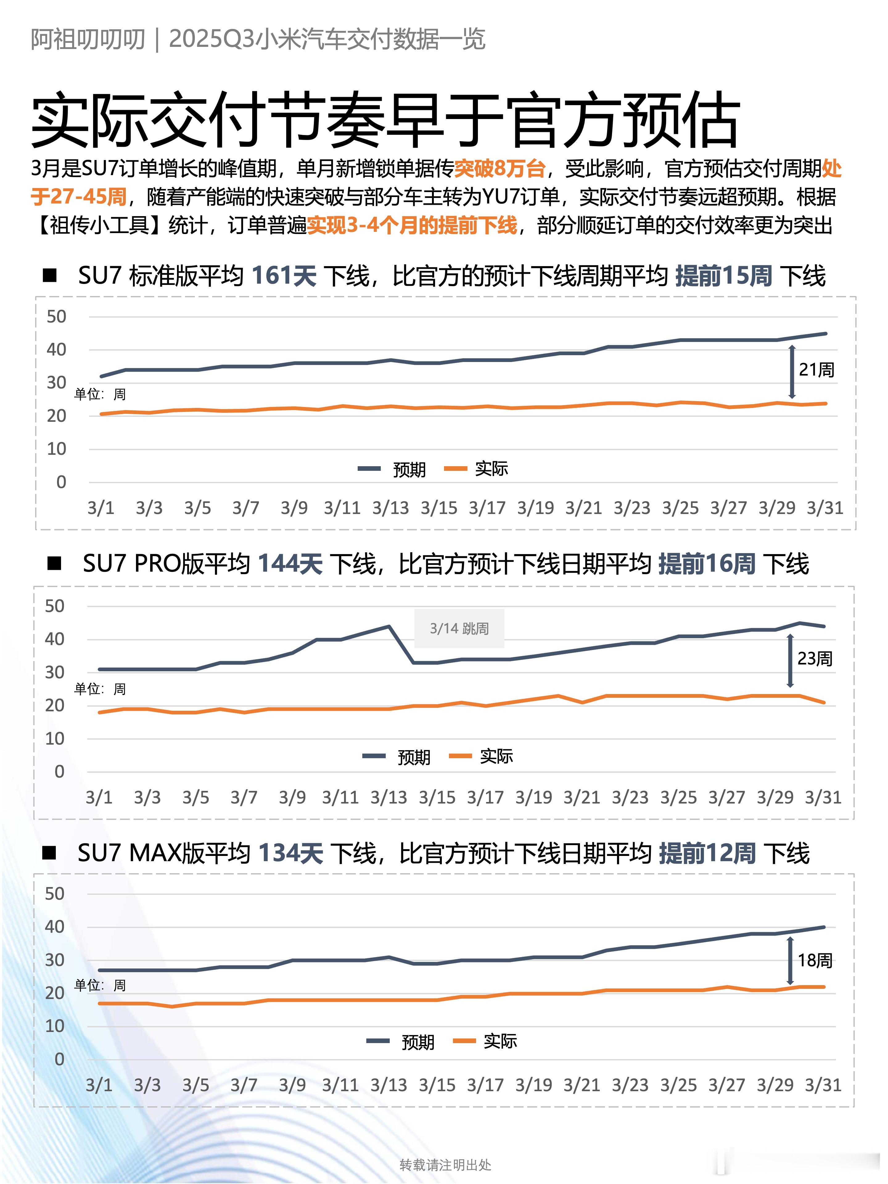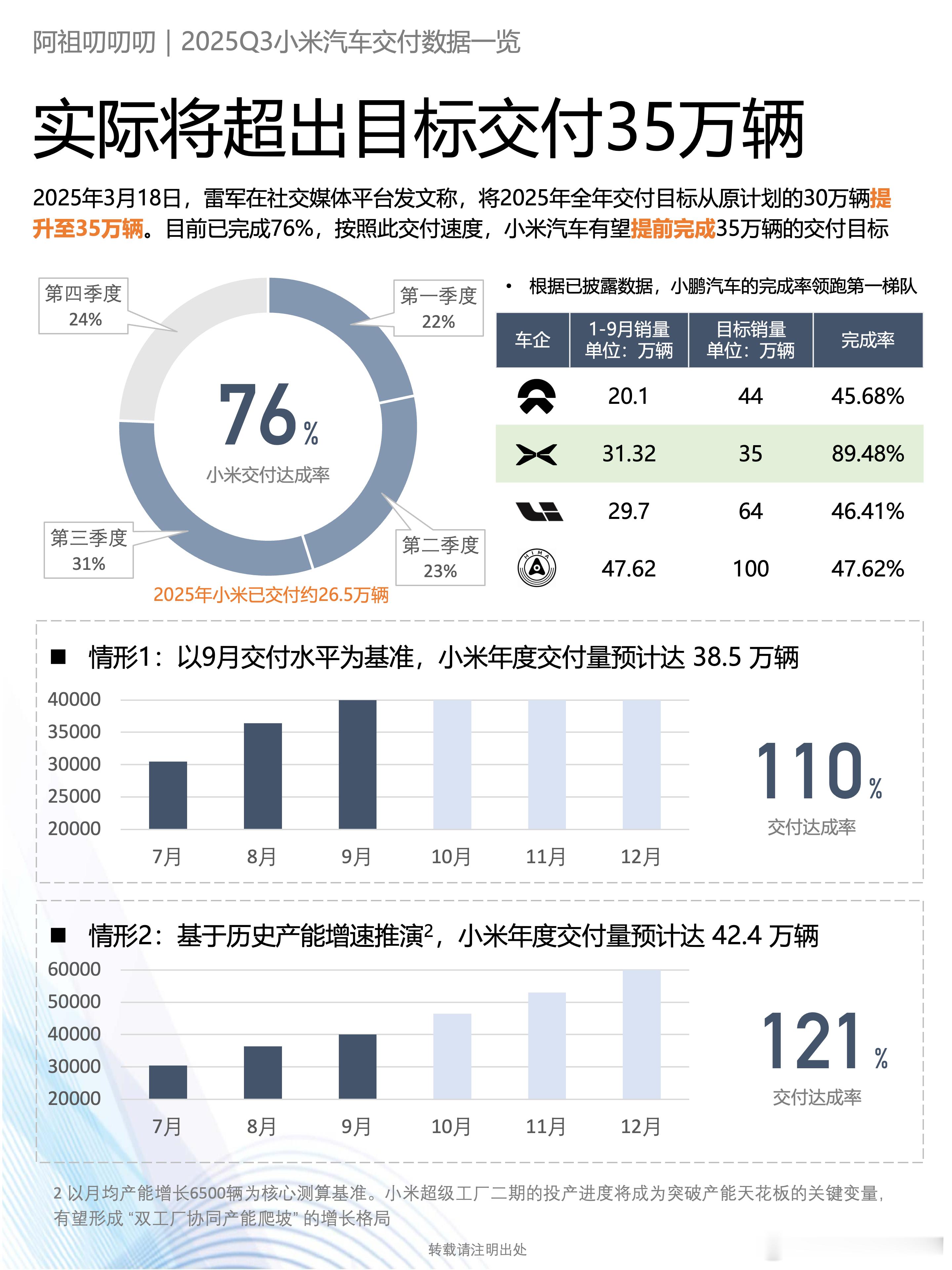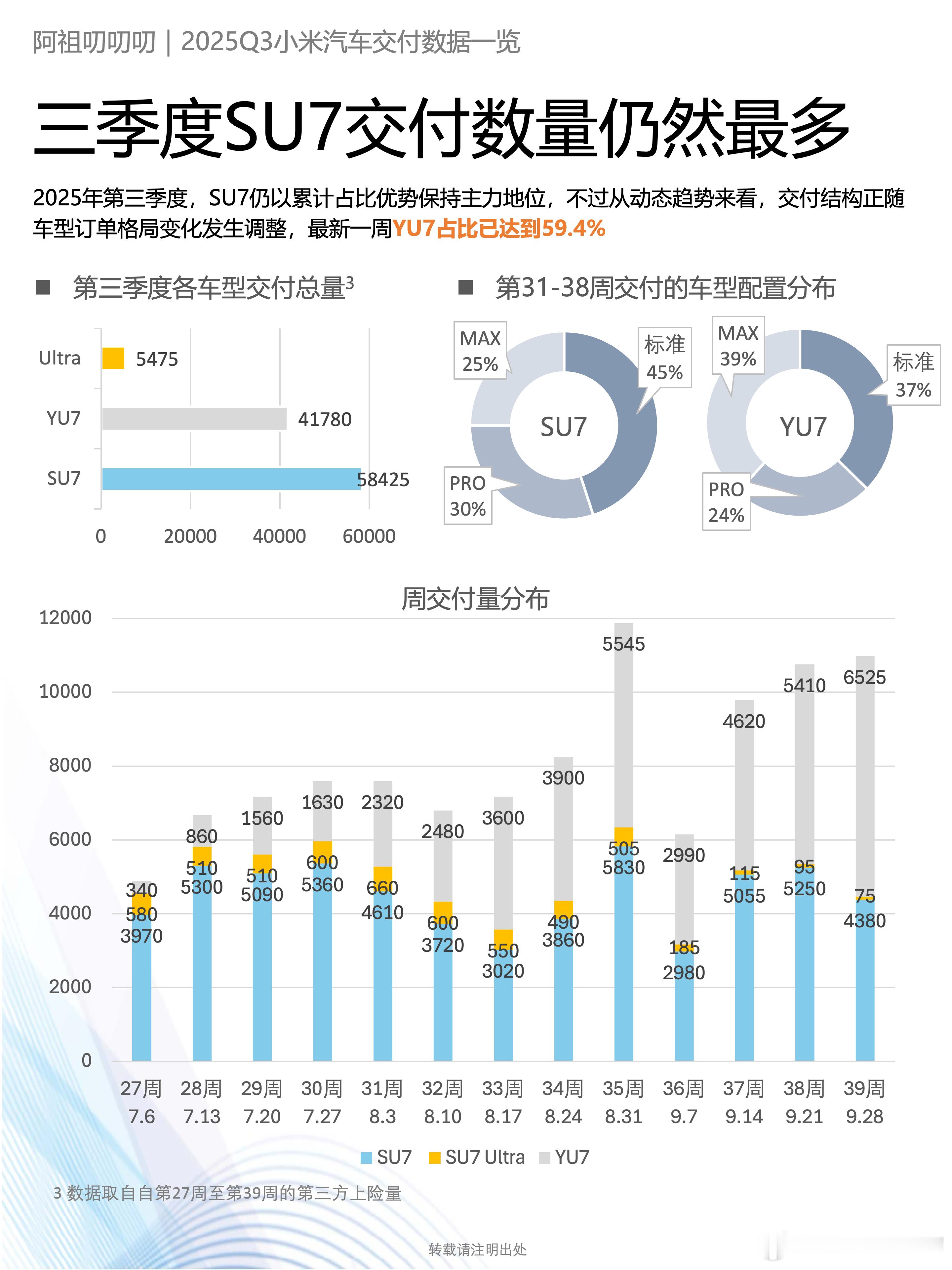 假期要结束了,总结了第三季度的小米交付情况。希望小米在最后一个季度能给力点,把8月底之前的su7和发布会当天的yu7都能交完[干饭人]