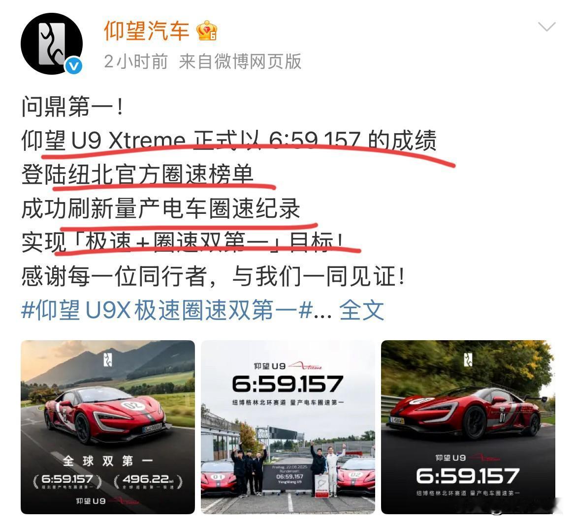 仰望U9X:“听说有人质疑我在纽北的成绩?行,给大家点时间先慢慢喷,我去纽北官网报个到!” 话说,喷子这算是求锤得锤了吧?仰望汽车官宣,仰望U9X正式以6:59.157的成绩登陆纽北官网榜单! 创量产电车圈速纪录,成为极速➕圈速双第一! 另外,还有一个关键点,貌似除了车手之外,此次纽北行的调校团队都是全华班!中国汽车站起来了![赞]