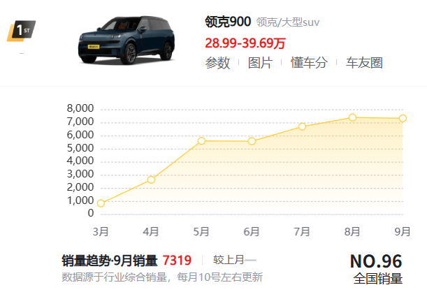 领克900能做到连续五个月5000+,连续两个月7000+的销量,