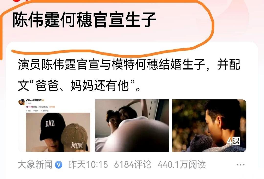 好家伙。 我说今天朋友圈怎么跟过年一样。 点开一看,陈伟霆,那个陈伟霆,直接当爸