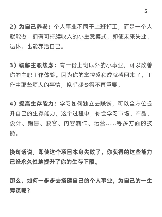个人事业 搞钱 职业发展 搞钱思维 职业规划 职业转型 认知提升 只工作不上班的自主人生 一人公司 个人成长