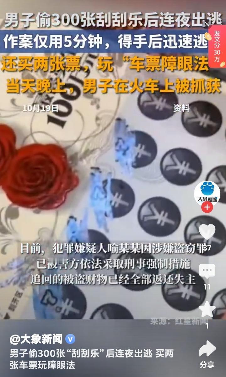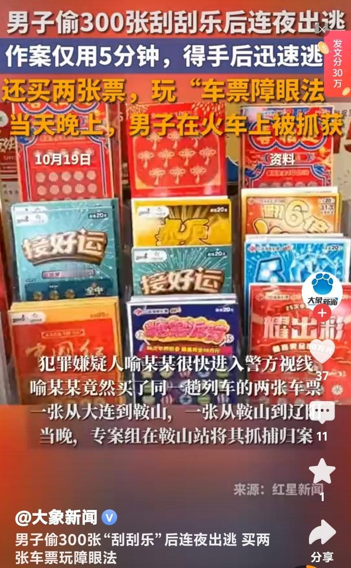 辽宁神偷5分钟盗走300张刮刮乐!火车上狂刮彩票时被抓,民警推门瞬间他正刮到最后一张 (来源:红星新闻、大象新闻) 凌晨两点的沈阳街头,一个黑影猫腰钻过卷帘门缝隙。手机微光扫过柜台,300多张刮刮乐彩票如落叶般被掳走,整个过程不到五分钟。这个自以为天衣无缝的窃贼,却在一列飞驰的火车上,被民警按倒在满桌金粉碎屑中——他竟在逃亡路上迫不及待地刮起了彩票。 监控录像里,鸭舌帽男子喻某某的作案手法堪称“快准狠”。他像熟悉自家客厅般直奔彩票站核心区域,撬锁、搜刮、撤离一气呵成。可这个精心策划的盗窃老手,却犯了两个致命错误:偷走即开型彩票相当于随身携带GPS,而连夜逃窜时买的双程车票,恰似给警方递上追捕路线图。 当喻某某在鞍山站站台被按住肩膀时,口袋里还揣着两张目的地不同的车票。这个自作聪明的“障眼法”,暴露了赌徒特有的侥幸心理——他妄想用一张票迷惑警方,另一张票带自己远走高飞。殊不知现代刑侦技术早已织就天罗地网,列车尚未到站,民警已守候在车厢连接处。 更戏剧性的是,警方破门而入时,这个亡命之徒竟正埋头刮着最后几张彩票。闪烁的警灯映照着他指甲缝里的金粉,37150元现金原封未动,而300张彩票已被刮开大半。这种近乎荒诞的执念,折射出赌性如何让人丧失理智:即便身处逃亡绝境,他仍幻想着下一秒就能刮出百万大奖。 彩票站老板清晨发现失窃时,本以为追回无望。谁知当天傍晚就接到警方电话:嫌犯在火车上人赃俱获。那些被刮花的彩票虽然失去了兑奖资格,但作为定罪证据却比任何监控录像都更具说服力。这场闹剧般的盗窃案,成了赌徒心理的鲜活标本——他们永远相信幸运女神下次就会降临,哪怕代价是锒铛入狱。 此案迅速冲上热搜的背后,是大众对“短期暴富梦”的集体反思。当喻某某用钳子撬开卷帘门时,他偷窃的不只是纸质彩票,更是无数普通人寄托在方寸之间的希望。那些被暴力撕碎的刮刮卡,何尝不是畸形财富观的隐喻?真正需要刮开的,或许是我们对幸运的认知盲区。 有心理学专家指出,此案折射出三个深层社会症结:一是赌徒往往高估小概率事件,将百万分之一的中奖率想象成触手可及;二是盗窃者普遍存在“捷径依赖”,认为冒险比踏实工作更易成功;三是现代人面对压力时,容易将彩票当作情绪出口。这些症结交织成网,让喻某某这样的投机者不断重蹈覆辙。 耐人寻味的是,喻某某得手后没有立即挥霍,而是选择乘坐票价最低的绿皮车逃亡。这种矛盾行为揭示出底层犯罪者的真实困境:他们既渴望一夜暴富改变命运,又无法摆脱谨小慎微的生存本能。就像他买的两张车票,一张指向欲望的深渊,一张通向往常的平庸,而最终抵达的却是法律的审判台。 警方透露,追回的赃物中包括尚未刮开的百余张彩票。当这些承载着梦想的小纸片重新锁进彩票站保险柜时,或许该有人提醒每个购彩者:真正的幸运从来不是刮开涂层的瞬间,而是踏过荆棘时留下的扎实脚印。此案最积极的启示在于:天网恢恢的法治社会,永远不会给投机取巧者开出“头奖”。 辽宁神偷 300张 刮刮乐 赌徒心理 天网恢恢 财富反思 (本文基于红星新闻、大象新闻公开报道创作,人物情节均来自警方通报)