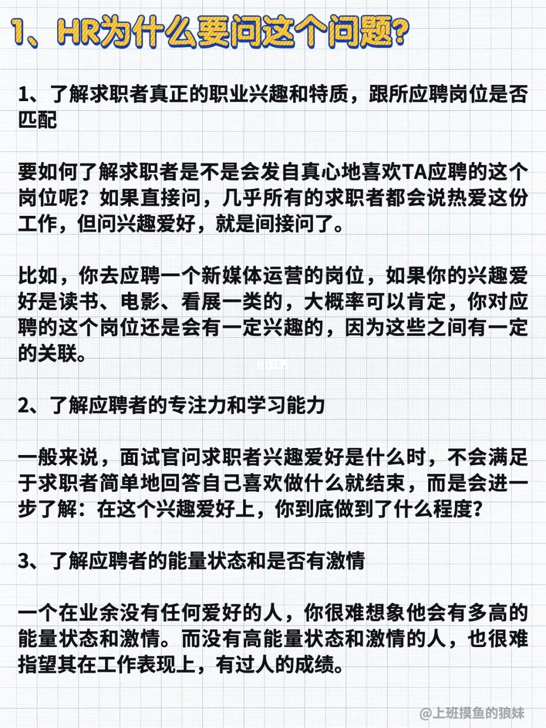 我是来工作的,面试官问我有什么兴趣爱好是什么意思呢[黑薯问号R]