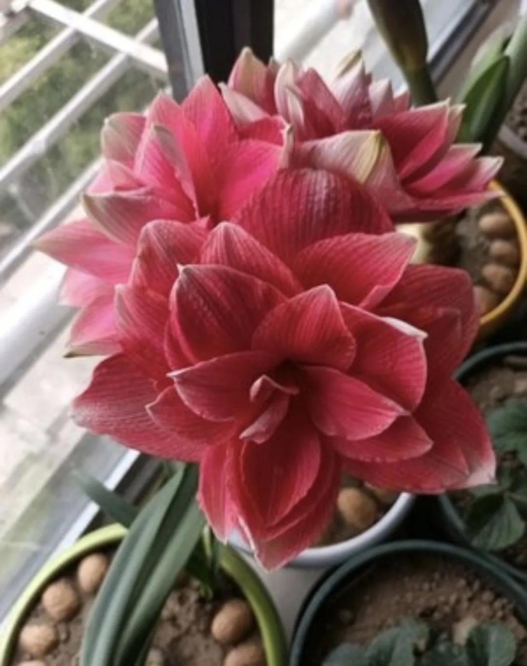 秋天来了,处理朱顶红,急着腾地方,处理太慢,就送人了,送给姐夫一些球,剩下一些球根不太好的,自留养球,从19年开始养球,至今6年了,养过十个品种,有洋朱樱桃妮芙、红宝石之星、粉色荣耀、鬼魅、日本凤蝶、条纹黛丝、美丽仙女,土朱米克斯、四川女王、原生女王,除了红宝石之星和鬼魅处理了,其它都送人了,土朱都拿回老家,送给了嫂子,洋朱送给姐姐和姐夫一些,还留三个品种,有好几个球不太好,需要养球了。家里地方太小,养了一堆花也是负担。