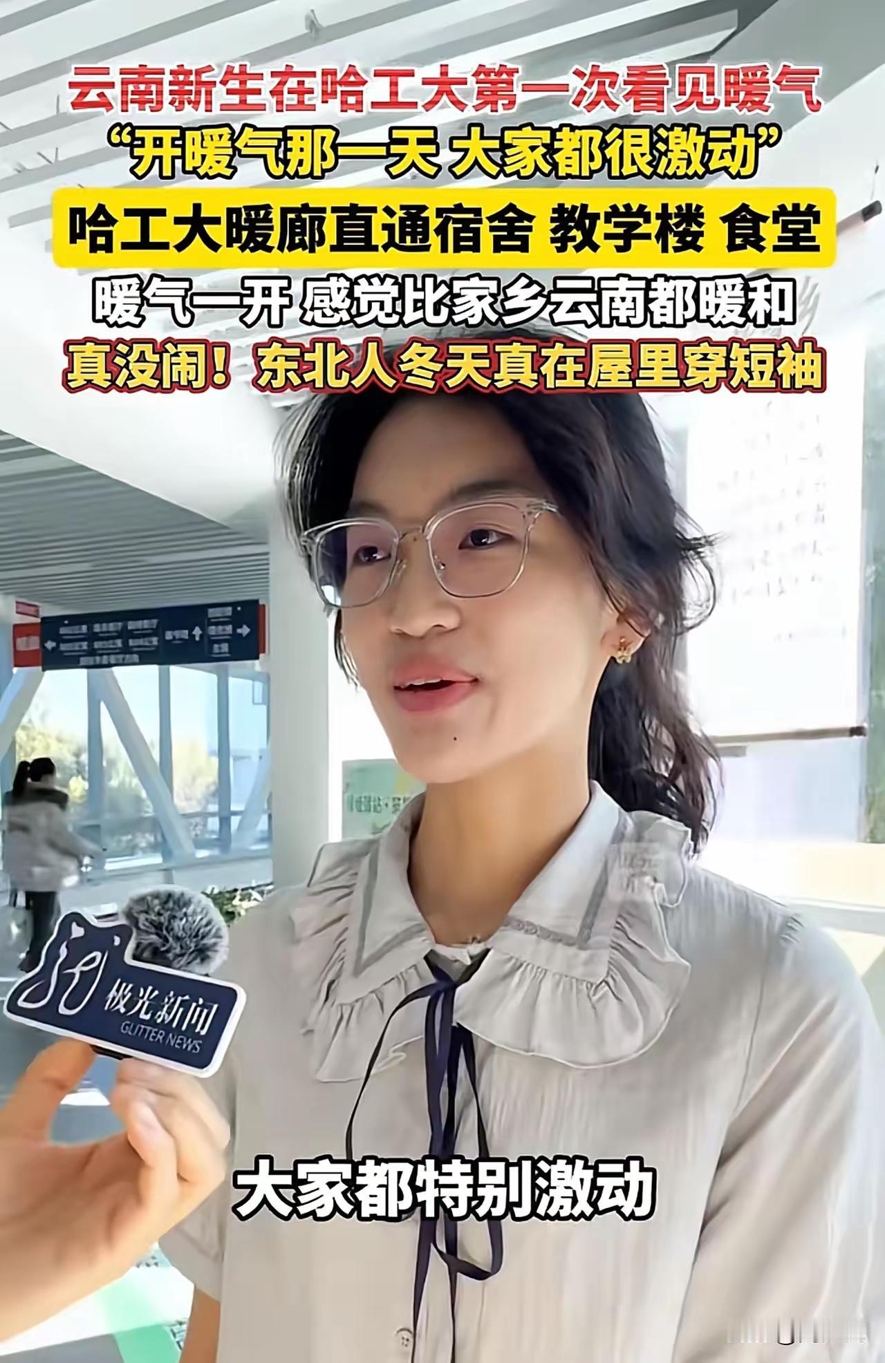 万万没想到哈工大以这种方式火了!近日,哈工大开启暖气第一天,有来自云南的学生对着媒体坦言:“开暖气第一天,大家都很激动,感觉比家乡云南都暖和!”作为过来人,有一说一,北方还真挺适合过冬,屋内有暖气,非常的暖和,睡觉也特别的舒服。 有网友表示:傻孩子,这是哈工大当然暖气很热了,因为他们有自己的供暖设施。普通民居里冬天往年屋里温度都不到20度,几个月的取暖费要几千块,结果温度只有十几度,我们最怕的就是过冬天。 作为一个南方人,个人认为冬天北方过冬好,房间里暖和,穿的少,盖的少。南方冬天里外一个样的冷,室内穿的多,睡觉盖的也多。 这是社会进步了,暖气确实暖和了。上世纪九十年代,多数东北的暖气供暖不足,或断供,冬天室内也就十几度,也要穿大衣。 对此大家怎么看呢