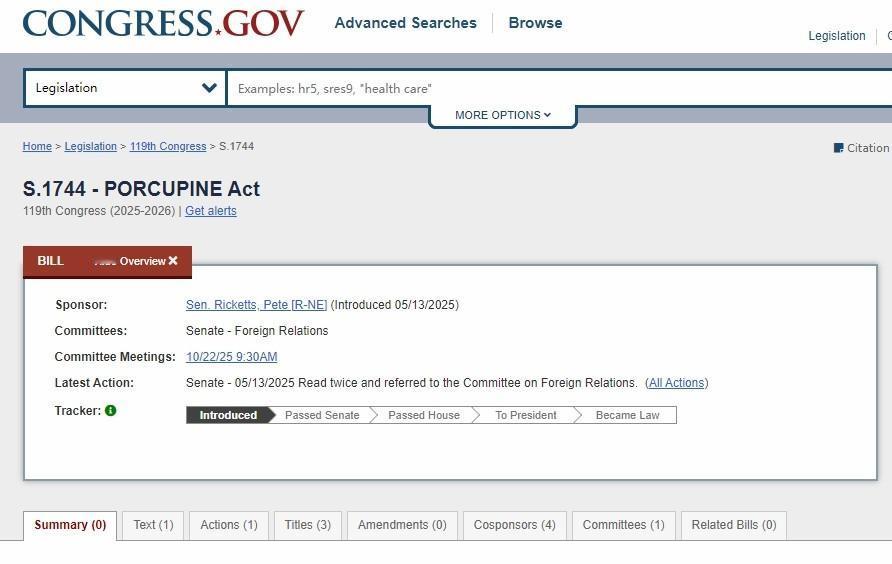【美参院外委会通过“豪猪法案”等四项涉台法案】据台媒今天报道,美参议院外委会10月22日通过4项涉台法案,包括简化冗长对台军售程序的“豪猪”法案,以及“威慑中国侵略台湾”、“美国—台湾美洲伙伴”及“台湾国际团结”法案。 据指出,“豪猪”法案将比照“北约盟友”标准开展对台军售,时间将缩短一半,此外还授权美国务卿建立快速决策程序,通过“北约+”的方式将美制军备与服务转移给台湾地区。 民主党参议员克里斯.昆斯称,接下来会送交参议院全院,筹划通过“热线程序”(hotline)使法案快速闯关。 所谓“威慑中国侵略台湾”法案主要提议,在“中国攻台”时,美国“准备好打击中国经济要害”;“美国—台湾美洲伙伴”法案专门支持台湾(当局)与拉美及加勒比海国家维持所谓“邦交”;“台湾国际团结法案”则要求美国在国际组织中反对所谓“通过扭曲政策及措辞来解决台湾地位的企图”。 根据美国立法程序,美参议院外委会炮制的“豪猪法案”等,须在参议院通过,且与众议院版本在文字上协调一致,才能送交总统签署。