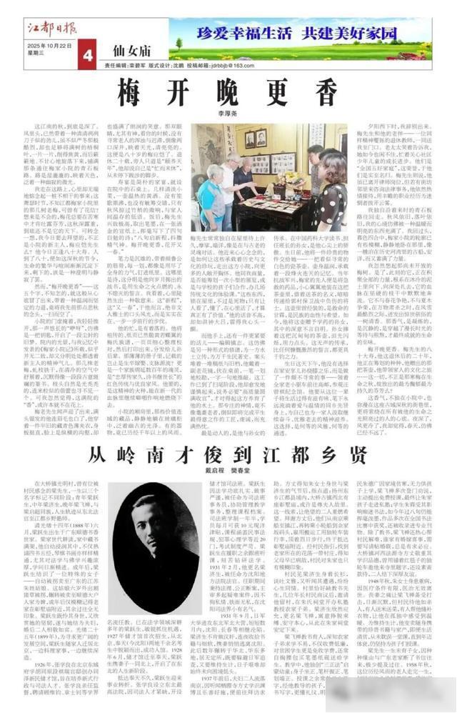 在大桥镇光明村,曾有位被村民感念的梁先生,一生以三个名字标记不同阶段:青年梁跃生,中年梁济生,晚年梁飞禅,与梁启超同族,人生轨迹从东北法官至江都乡野塾师。