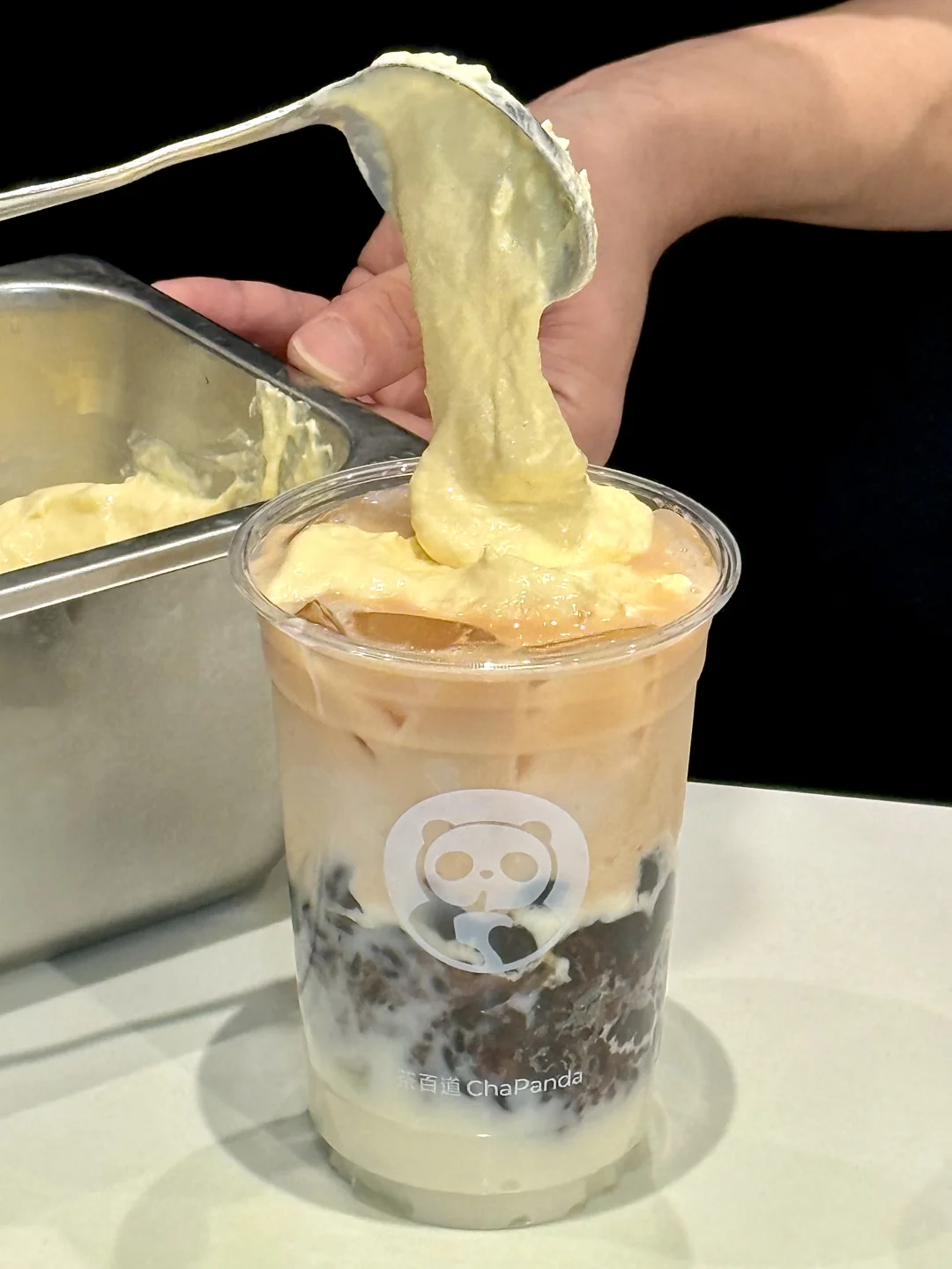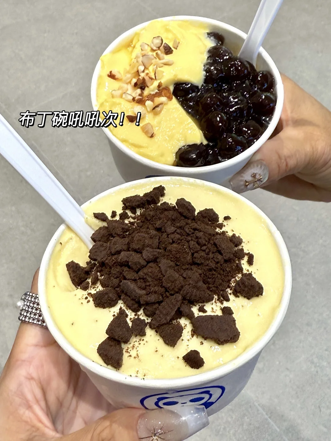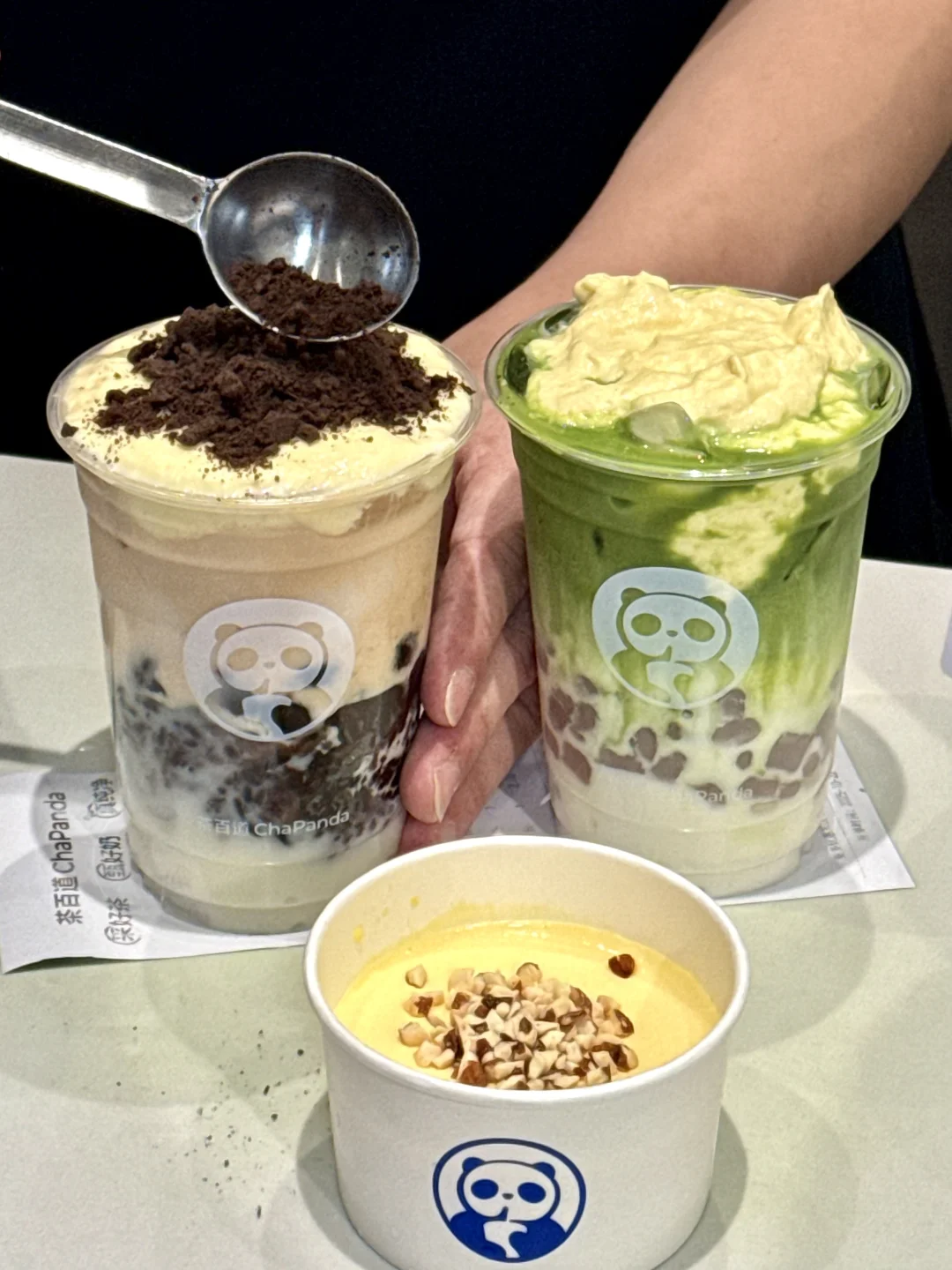 啊啊啊啊茶百道蛋糕系列太杀我了! 我宣布以后下午茶就是这杯可以喝的蛋糕奶茶了 半熟芝士酱和坚果慕斯布丁碗简直是甜品脑袋的本命!! diy小料进去冷冻起来无敌了!! 香浓绵密得像坐上了云朵滑梯! 😭😭怎么会好吃成这样…… 快说你是不是要偷偷开蛋糕店了 · ㊙️隐藏喝法:奥利奥半熟芝士➕禾米麻薯➕黑糖珍珠➕血糯米!!又奶又满足!芝士味巨巨巨浓郁!!搅匀满嘴都是奥奥!再搭配底下带有锡兰红茶汤更醇厚!真的吼吼喝😭 我还另外加了珍珠、麻薯和血糯米!一整杯口感绝了!!绵密浓郁无敌爆炸美味😋😋 · ✔️慕斯布丁珍奶➕五分糖➕少冰/热 但凡喝过都忍不住夸一嘴的程度。。。 仿佛在喝液体版焦糖慕斯布丁!! 锡兰红茶奶茶底的馥郁感会让你立马爱上! 搭着慕斯布丁和珍珠,咸甜交织!! 口感层次爆炸丰富好喝疯了🥹 · 还有新出的坚果慕斯布丁碗!!甜品控完全抵挡不住呜呜呜呜!一口下去滑滑嫩嫩的,夹着巴旦木碎香脆的口感,好吃到停不下来!!! ·