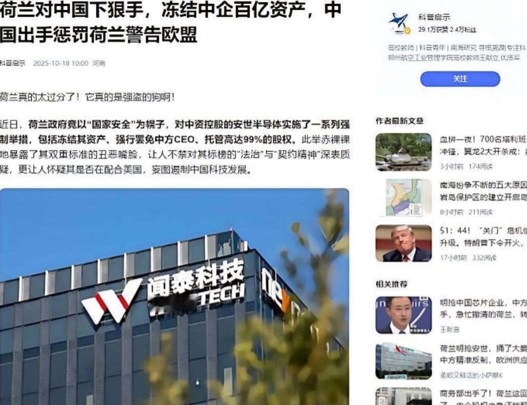 中国正式对涉及荷兰ASML光刻机的核心原材料、设备和关键企业启动最严格的出口限制。任何谈判窗口全部关闭,豁免请求直接无视。明眼人都看得出来,这不是拉架子,而是“动真格”了。全球唯一的EUV光刻机制造商,荷兰的阿斯麦,最近日子有点难。   这事儿真不是咱们突然翻脸,实在是这些年被卡脖子卡得太憋屈了,换谁也得拿出硬态度。   早从2020年开始,美国就逼着荷兰不让ASML卖最先进的EUV光刻机给中国,那会儿咱们想搞高端芯片,没这机器就像做饭少了柴火,急得直转圈。本以为这就够狠了,没想到2022年美国又升级了禁令,连次高端的DUV光刻机都不让卖,等于把咱们芯片产业的路往死里堵。到了2024年更过分,荷兰政府直接吊销了好几批光刻机的发货许可证,把已经谈好的订单都给取消了,这哪是做生意的规矩啊。   更让人窝火的是ASML的态度,一边靠着咱们的材料赚钱,一边跟着美国对付咱们。可能有人不知道,这光刻机看着是荷兰造的高科技,其实骨子里全是中国的“料”。机器里那些能带动零件做纳米级运动的磁铁,得用稀土做的钕铁硼;还有那个能精准刻芯片的激光器,核心就靠镱、铥这些稀土元素,缺了它们,再精密的机器也动不起来。   全球差不多九成的稀土分离加工活儿都是咱们干的,而且只有咱们能稳定做出“九个九”纯度的稀土材料,这技术连ASML自己都搞不定。等于说他们拿着咱们的核心材料,造出来机器再反过来卡咱们的脖子,这事儿换谁能忍?   之前荷兰还跟美国、日本凑一起搞所谓的“芯片协议”,明着就是要联合起来封杀中国的半导体产业。咱们一开始还好好商量,外交部、商务部都多次提醒他们,这样破坏产业链稳定,最后只会两败俱伤。   可荷兰根本没听进去,反而变本加厉,后来甚至动用老掉牙的法律冻结中资企业的股权,连安世半导体这样跟全球车企都挂钩的公司都敢乱插手。直到咱们出了出口管制的牌,他们才着急,经济大臣主动打电话来求沟通,这时候再谈哪还来得及?   再说了,咱们现在也不是没底气的。以前总觉得没ASML的光刻机不行,这些年被逼着自己搞研发,现在不仅能造光刻机了,国内半导体材料市场还成了全球增长的主力,2025年占了全球四分之一的份额,以后还会越来越大。   ASML自己的日子其实早不好过了,2025年三季度营收环比降了不少,净利润也下滑了,这还是在全球芯片库存慢慢消化的时候,可见他们多依赖中国市场和中国材料。他们首席财务官嘴硬说库存够,可内行都知道,那些高纯度稀土材料根本没法长期囤积,而且就算有原料,没有咱们的提纯技术也白搭,找替代供应商至少要等三年,哪有那么容易。   这次咱们动真格,也是给所有想跟着美国搞封锁的国家提个醒:全球产业链早就你中有我了,谁想拿技术当武器,就得想想自己有没有被别人卡脖子的地方。   ASML的光刻机是厉害,但没有中国的稀土,它就是一堆废铁;荷兰想靠跟着美国占便宜,可忘了自己的企业还指着中国市场吃饭。之前欧洲车企都已经喊预警了,说再断供关键元器件,他们的生产线四五周内就得停工,这就是破坏规则的代价。   说到底,咱们不是故意要跟谁对着干,只是不想再受气了。以前总想着和气生财,可别人把咱们的客气当软弱,一次次突破底线。现在拿出硬态度,就是要让他们明白,合作得讲对等,想拿咱们的资源、占咱们的市场,又不想让咱们发展,天下哪有这样的好事?   要是荷兰真能回到讲道理的轨道上,尊重契约精神,不跟着美国瞎折腾,那合作的门随时能开,但想靠耍小聪明继续卡咱们,那咱们手里的牌还多着呢。