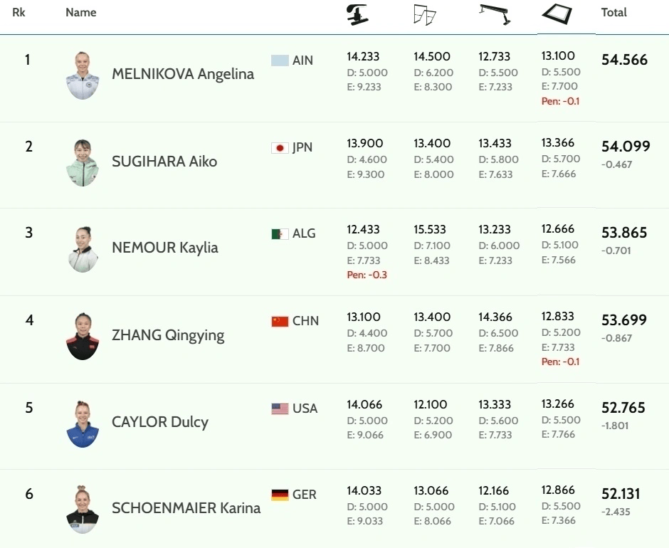 虎扑10月23日讯2025体操世锦赛女子全能决赛将于今天晚上19:30进行,资格赛中排名第4的张清颖是唯一一名入围决赛的中国选手,她将与东京奥运会女子团体金牌主力的俄罗斯选手梅尔尼科娃、非洲名将内穆尔、日本老将杉原爱子展开争夺奖牌之战。