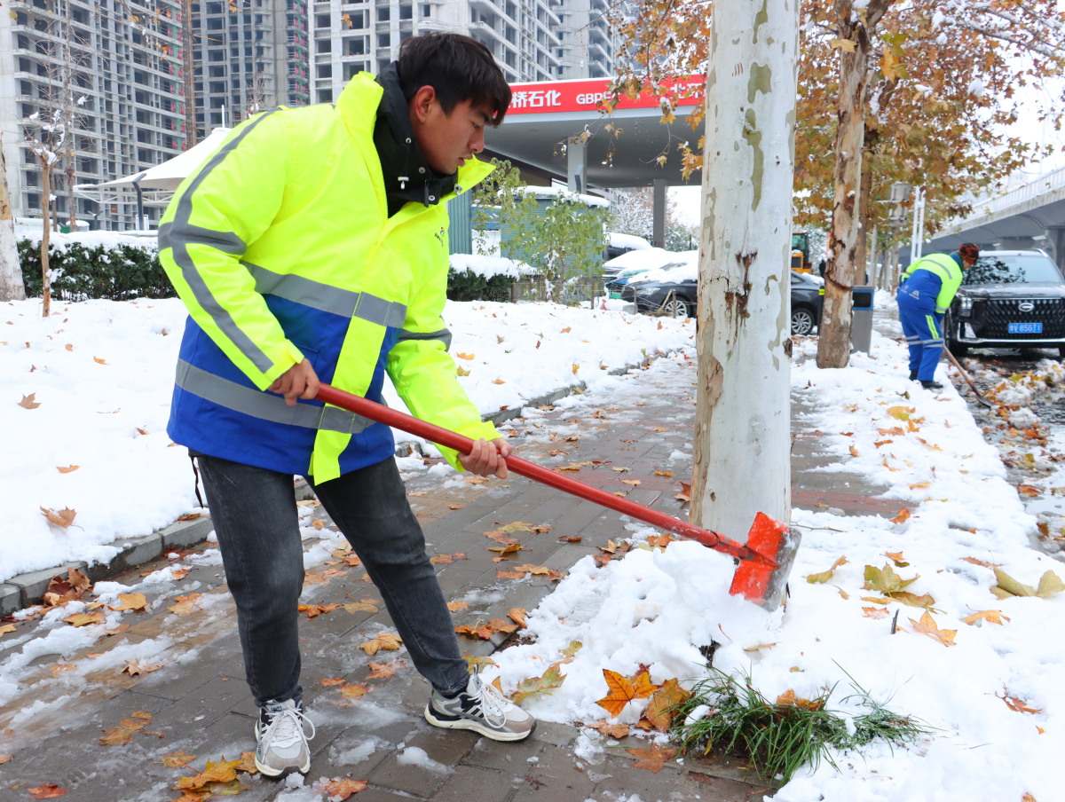 2024年初郑州市遭遇一场大范围降雪,雨雪中夹杂着霰粒,道路因此极湿滑,除雪难度大。温东阳带领着班组成员毅然承担起了科学大道立交桥和西三环延长线区域人工除雪工作。降雪开始后他们及时在高架桥上下匝道及弯道处撒布融雪剂,遇到多部社会车辆车轮打滑、无法前行,他们立刻暂停手中工作先行推车,帮助市民摆脱困境,受到数位车主连连称赞。雪中雪后,他们连续作战48小时,协助其他班组共同清理高架桥、道路两侧的残留冰雪,为市民的出行安全和便利提供了坚实保障。