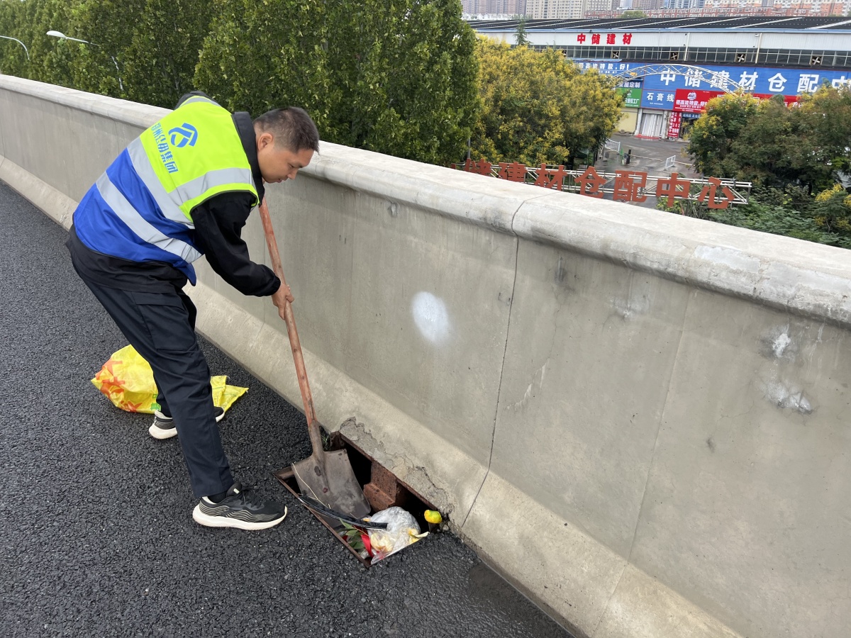 沿着路段向北不断推进,他们累计清理了数十处雨水箅子,周边积水随之逐步消退。连续奋战六小时后,淤泥终于清运完毕,路面恢复整洁,车辆安全通行。