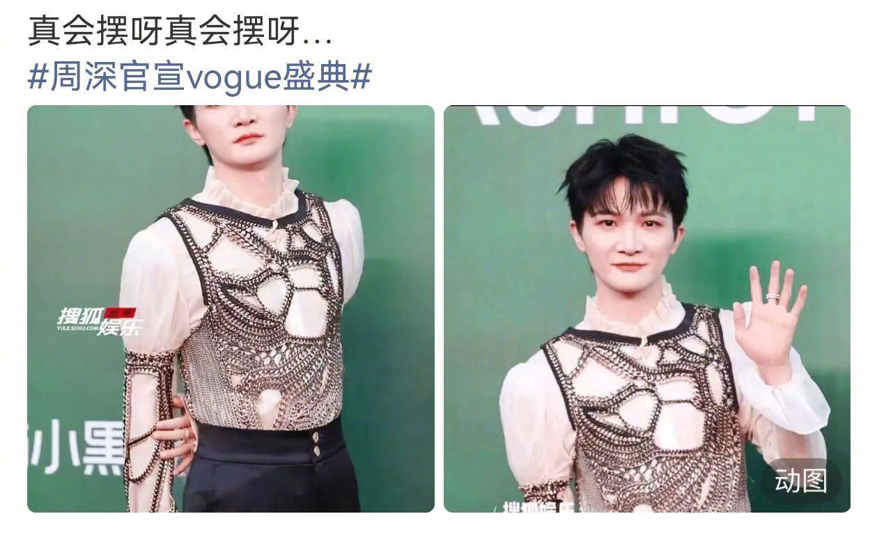 周深在外面怎么是这样的周深!你在外面怎么是这样的!前两天演唱会还是扑腾着小翅膀的快乐小鸟,今天VOGUE盛典直接链条加身,pose摆得比谁都酷!这反差也太大了吧!! vogue时尚之力盛会