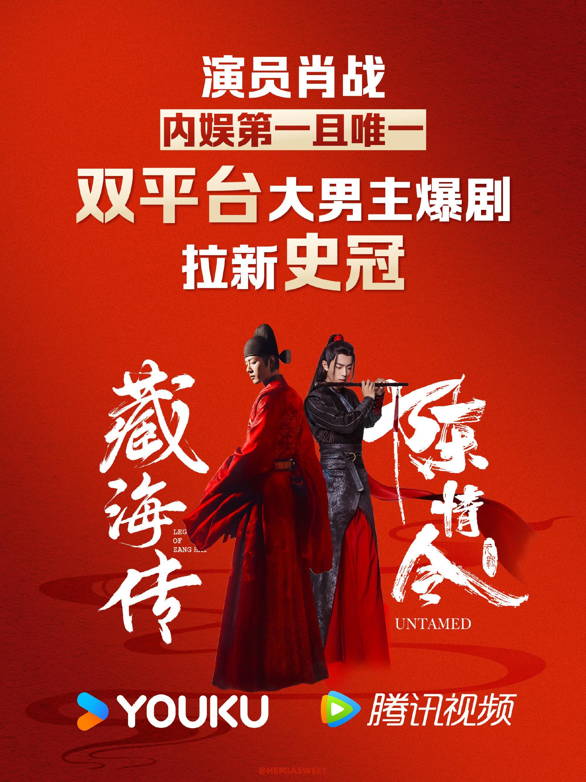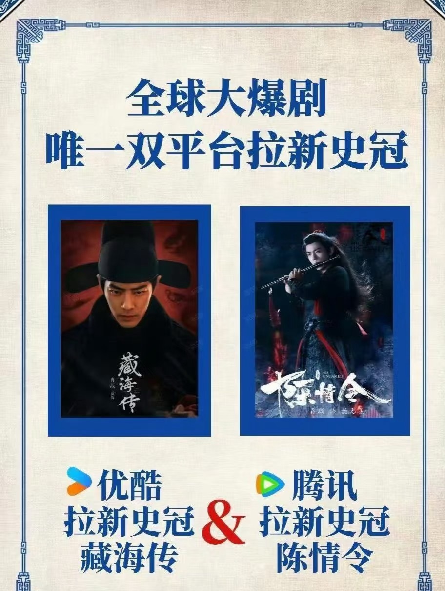肖战双平台拉新史冠肖战凭借藏海传和陈情令达成了双平台拉新史冠,有且唯一一位!!!