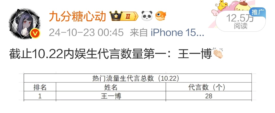 去年今日还在感慨内娱代言数量第一王一博——28个,今年这个时候依旧第一,但31个了[哈哈][哈哈][哈哈]