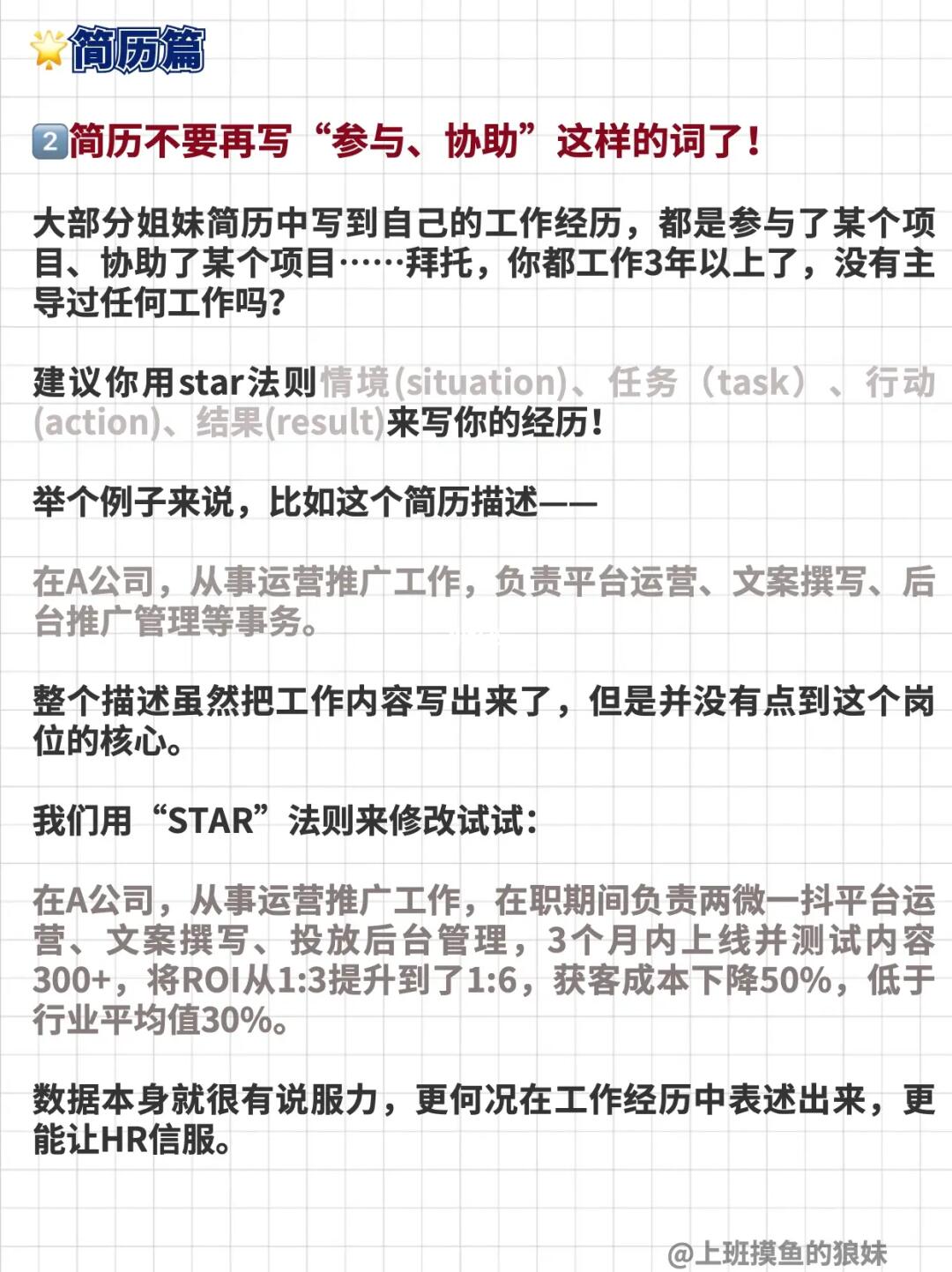 2⃣️简历不要再写“参与、协助”这样的词了!(见图3)